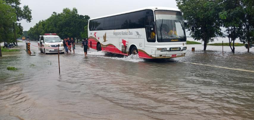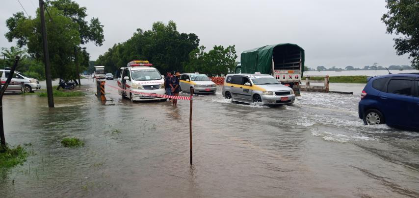 အဆိုပါ ကားလမ်းရေကျော်နေမှုကြောင့် ယာဉ်များပုံမှန်သွားလာနိုင်ရေး၊ ပိတ်ဆို့မှုမဖြစ်ပေါ်စေရေး၊ လမ်းကြောင်းရှင်းလင်းရေးနှင့် ရေလမ်းကြောင်းပြသရန်အတွက် မြို့နယ်လမ်းဦးစီးဌာန၊ မြို့နယ်မီးသတ်ဦးစီးဌာန၊ မြို့နယ်ယာဉ်ထိန်းတပ်ဖွဲ့ဝင်များနှင့် ရွှေသံလွင်ကုမ္ပဏီတို့ ပူးပေါင်းဆောင်ရွက်လျက်ရှိကြောင်း သိရသည်။