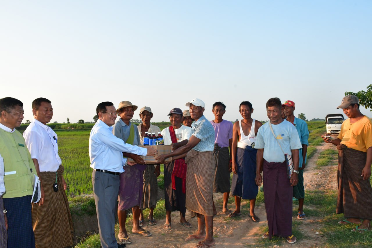 ယင်းနောက် နေပြည်တော်ကောင်စီဝင်နှင့်တာဝန်ရှိသူများသည် လယ်ဝေးမြို့နယ်အတွင်း သဘာဝဘေးကြောင့် ရေကြီးနစ်မြုပ်ပျက်စီးဆုံးရှုံးခဲ့သော စပါးစိုက်ဧကများအတွက် ပြန်လည်အစားထိုးစိုက်ပျိုးနေသည့် အလယ်ကျွန်းကျေးရွာအုပ်စု၊အလယ်ကျွန်းကျေးရွာ ကွင်းအမှတ် ၁၇၄၃ နှင့် အင်ပင်ကျေးရွာအုပ်စုရှိ ကွင်းအမှတ် ၁၇၅၂ တို့သို့သွားရောက်၍ ပြန်လည်အစားထိုး စိုက်ပျိူးပြီးစီးမှုအခြေအနေများနှင့် လိုအပ်သည့်သွင်းအားစုများ ထောက်ပံ့ပေးမှုကို သွားရောက်ကြည့်ရှုစစ်ဆေးခဲ့ရာ မြို့နယ်စိုက်ပျိူးရေးဦးစီးဌာန မြို့နယ်ဦးစီးမှူး ဦးစောဝင်းမှ ပြန်လည်ကုစားစိုက်ပျိူးပြီးစီးမှု အခြေအနေများ၊ သွင်းအားစုထောက်ပံ့ပေးပြီးမှု အခြေအနေများအား ရှင်းလင်းတင်ပြသည်။