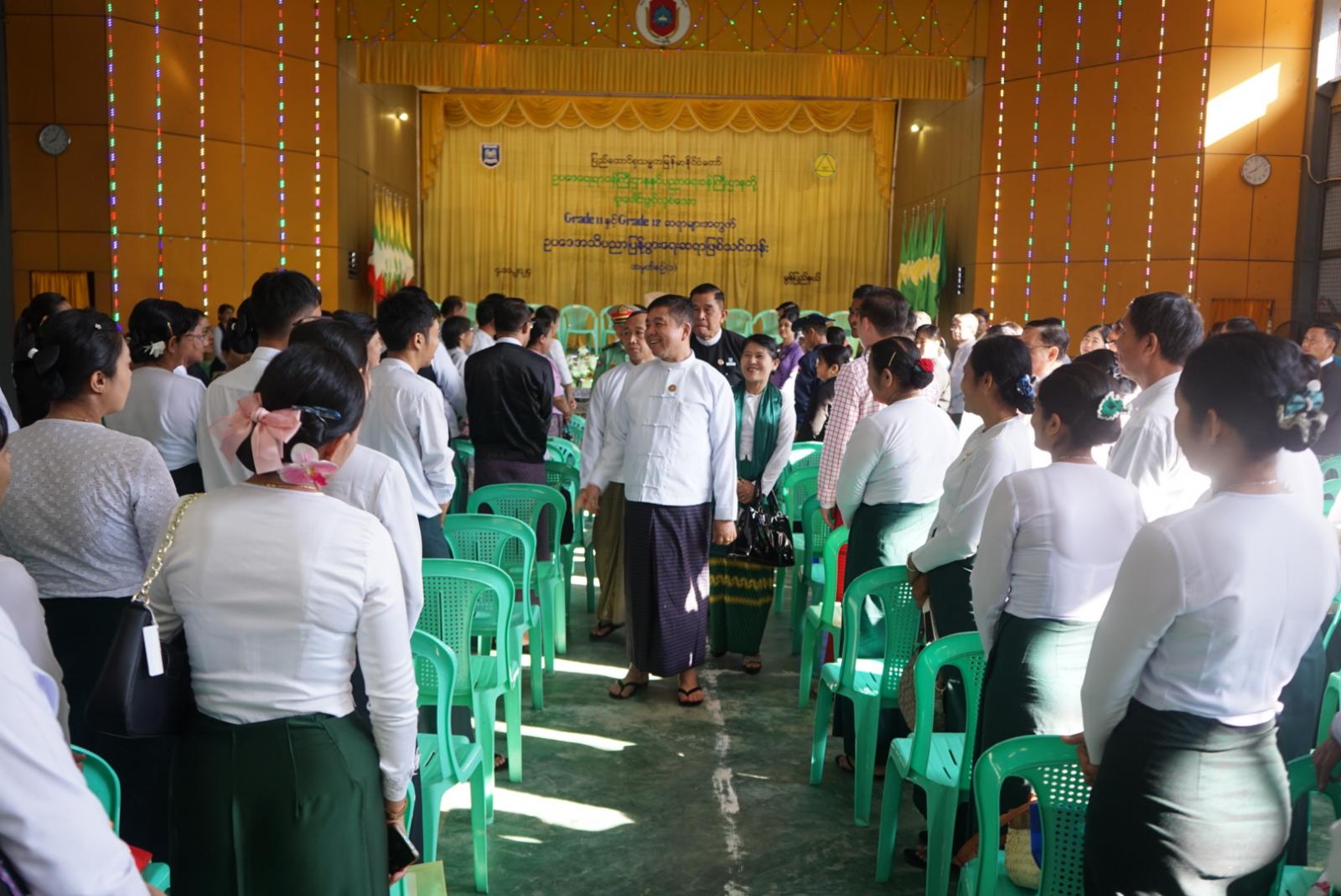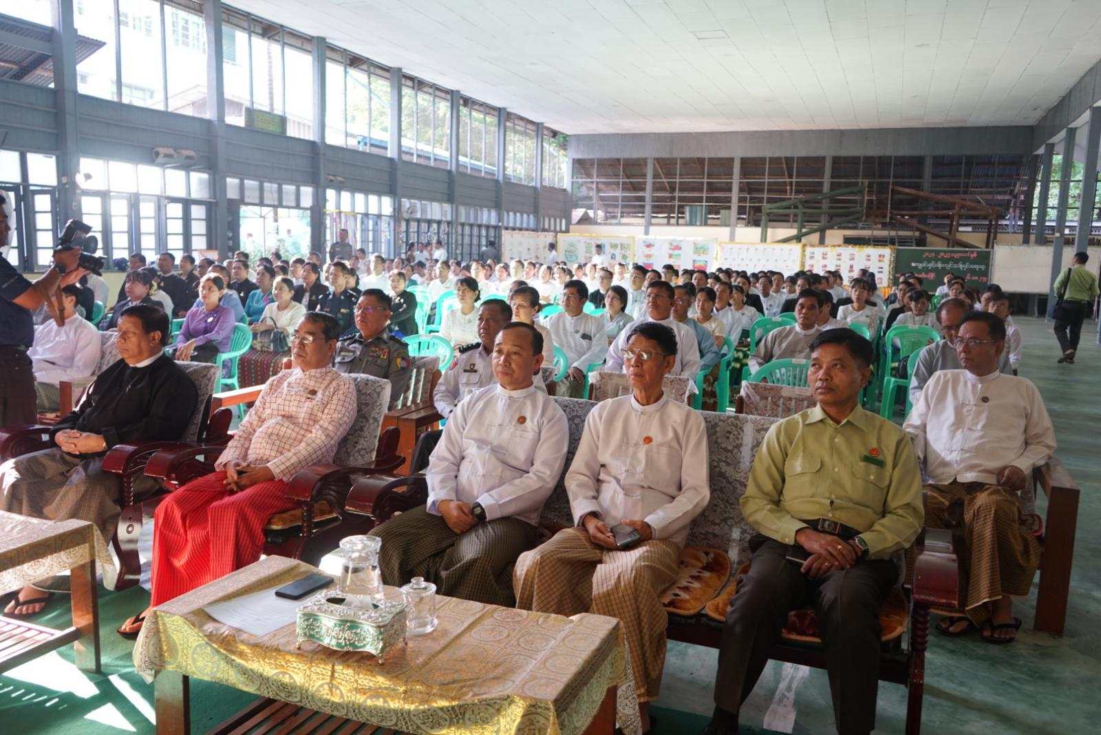 ဥပဒေရေးရာဝန်ကြီးဌာနနှင့် ပညာရေးဝန်ကြီးဌာနတို့ ပူးပေါင်းဖွင့်လှစ်သော Grade 11 နှင့် Grade 12 သင်ဆရာများအတွက် ဥပဒေအသိပညာပြန့်ပွားရေး ဆရာဖြစ်သင်တန်းအမှတ်စဉ် (၁) ဖွင့်ပွဲအခမ်းအနားကို ယနေ့နံနက်ပိုင်းက မော်လမြိုင်မြို့ အမှတ်(၈)အခြေခံပညာအထက်တန်းကျောင်း ယင်းမာခန်းမ၌ ကျင်းပပြုလုပ်ရာ ပြည်နယ်ဝန်ကြီးချုပ် ဦးအောင်ကြည်သိန်း၊ ပြည်နယ်တရား လွှတ်တော်တရားသူကြီးချုပ်၊ ပြည်နယ်အစိုးရအဖွဲ့ဝင်ဝန်ကြီးများ၊ ဌာနဆိုင်ရာ တာဝန်ရှိသူများ၊ သင်တန်းသား၊ သင်တန်းသူများ၊ ဆရာ၊ ဆရာမများတက်ရောက်ခဲ့သည်။