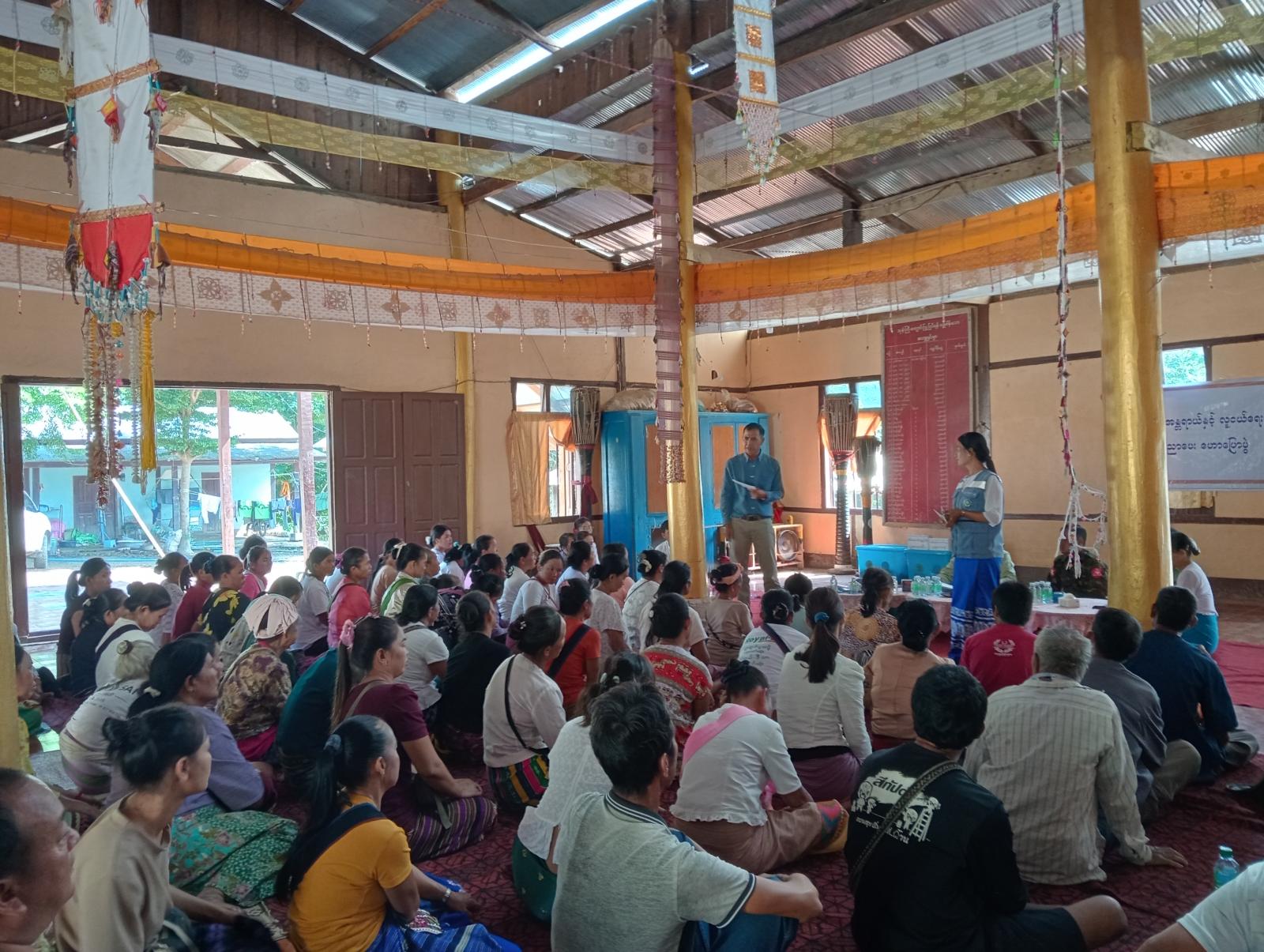 ရှေးဦးစွာ မြို့နယ်အုပ်ချုပ်ရေးမှူး ဦးအားလွန်က အဖွင့်အမှာစကား ပြောကြားပြီးနောက် ခရိုင်ဘေးအန္တရာယ်ဆိုင်ရာစီမံခန့်ခွဲမှုဦးစီးဌာန၊ ဦးစီးအရာရှိ ဒေါ်စန္ဒာရွှေက သဘာဝဘေးအန္တရာယ်ဆိုင်ရာ အကြောင်းအရာများအား အသိပညာပေး ဟောပြောသည်။