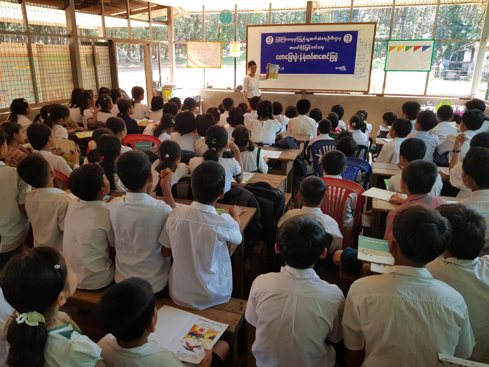အဆိုပါ အသိပညာပေးလုပ်ငန်းတွင် ပြန်ကြားရေးနှင့်ပြည်သူ့ဆက်ဆံရေးဦးစီးဌာနမှ ကျောင်းသူကျောင်းသားများ ဖတ်ရှုလေ့လာနိုင်ရန် ကလေးကဗျာများ၊ ရုပ်ပြပုံပြင်များ၊ စာစောင်များစသည့် ကလေးများအသိပညာတိုးပွားရေးစာအုပ်စာပေများနှင့် စာဖတ်ရှိန်မြှင့်တင်ရေး၊ မူးယစ်ဆေးဝါးအန္တရာယ် သတိပြုကာကွယ်ရေးစသည့် အသိပညာပေးနံရံကပ်စာစောင်များတို့ကို ခင်းကျင်းပြသရာ ကျောင်းသား၊ ကျောင်းသူများမှ စိတ်ပါ၀င်စားစွာ ကြည့်ရှုလေ့လာခဲ့ကြောင်း သိရသည်။