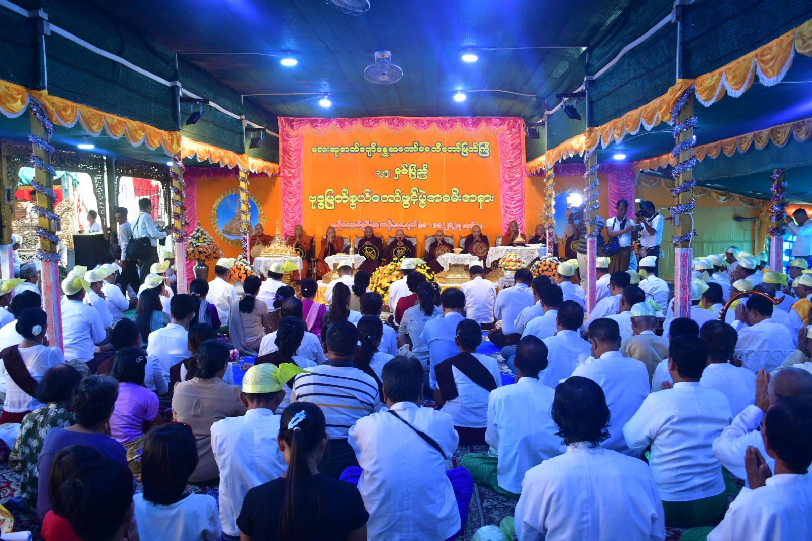 ၎င်းနောက် ဩဝါဒါစရိယဆရာတော်ကြီးများထံ ပဲခူးတိုင်းဒေသကြီးအစိုးရအဖွဲ့ လူမှုရေးရာဝန်ကြီး ဦးမျိုးအောင်က သာသနာရေးဆိုင်ရာများ လျှောက်ထားပြီး အလှည့်ကျဂေါပက အဖွဲ့ဝင်များက ဗုဒ္ဓမြတ်စွယ်တော်ဖွင့်လှစ် အပူဇော်ခံပွဲဆောင်ရွက်မှုနှင့်ပတ်သက်၍ တင်ပြလျှောက်ထားသည်။
