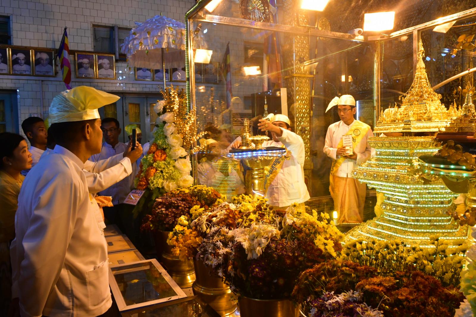 အဆိုပါ ဗုဒ္ဓမြတ်စွယ်တော်ကို ရွှေဆံတော်စေတီတော်မြတ်ကြီးအား လက်ျာရစ်(၃)ကြိမ် လှည့်လည်အပူဇော်ခံပွဲကို နိုဝင်ဘာလ (၁၃) ရက် ညနေ (၃) နာရီအချိန်တွင် စည်ကားသိုက်မြိုက်စွာ ကျင်းပမည်ဖြစ်ပြီး ဗုဒ္ဓမြတ်စွယ်တော်ကို အများပြည်သူ ဖူးမြော်ကြည်ညိုနိုင်ရန် မြတ်စွယ်တော်တိုက် မှန်ကျောင်းဆောင်တော်၌ တန်ဆောင်မုန်းလဆန်း (၁၄) ရက်မှ တန်ဆောင်မုန်းလပြည့်ကျော် (၁) ရက်နေ့အထိ၊ နိုဝင်ဘာလ (၁၄) ရက်မှ (၁၆) ရက်နေ့အထိ နေ့စဉ်နံနက် (၅) နာရီခွဲမှ ည (၉) နာရီအချိန်အထိ အပူဇော်ခံမည်ဖြစ်ကြောင်းနှင့် မည်သူမဆို လာရောက်ဖူးမြော်ကြည်ညို သဒ္ဓါပွားများနိုင်ကြောင်း ဂေါပကအဖွဲ့ထံမှ သိရသည်။