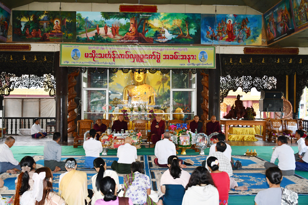 ဦးစွာ နိုင်ငံတော်ဗဟိုသံဃာ့ဝန်ဆောင်မြဝတီမြို့၊ မြသုခ၊ အမှတ် (၂၇၅) တပ်ဦးကျောင်းတိုက်ဆရာတော် အဂ္ဂမဟာသဒ္ဓမ္မဇောတိကဓဇ မဟာဂန္တဝါစကပဏ္ဍိတ ဘဒ္ဒန္တ ဒေါက်တာအရှင်ပညာနန္ဒနှင့် ဆရာတော်၊ သံဃာတော် အရှင်သူမြတ်များက နမောတဿ သုံးကြိမ်ရွတ်ဆို ဘုရားကန်တော့၍ အခမ်းအနားကို ဖွင့်လှစ်ပေးပြီး မြဝတီခရိုင်စီမံအုပ်ချုပ်ရေးအဖွဲ့ဥက္ကဋ္ဌ ခရိုင်အုပ်ချုပ်ရေးမှူး ဦးကောင်းစံလင်း၊ အဖွဲဝင်(၂) ဦးစိန်သောင်း၊ ခရိုင်နှင့်မြို့နယ်အဆင့် ဌာနဆိုင်ရာတာဝန်ရှိသူများနှင့် ဧည့်ပရိသတ်အပေါင်းတို့က ငါးပါးသီလခံယူဆောက်တည်ကြသည်။