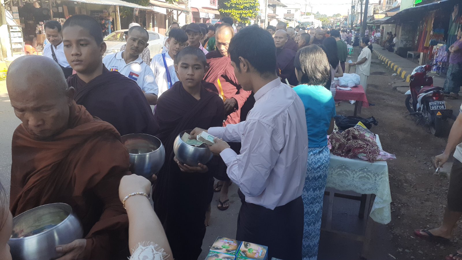 ကရင်ပြည်နယ်၊ ဘားအံခရိုင်၊ လှိုင်းဘွဲမြို့နယ်တွင် တန်ဆောင်မုန်းလပြည့်နေ့ ဆွမ်းကြီးလောင်းလှူပွဲကို ယမန်နေ့ နံနက် (၇) နာရီခွဲအချိန်က မြို့ပေါ်ရပ်ကွက်များအတွင်း လှည့်လည်၍ ဆွမ်းကြီးလောင်းလှူပွဲ ဆောင်ရွက်ခဲ့ကြောင်း သိရသည်။