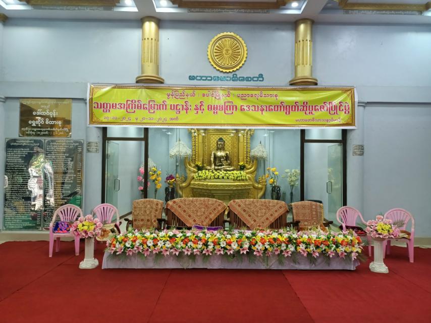 မွန်ပြည်နယ်၊ ပေါင်မြို့နယ်ပညာရေးမိသားစု (သတ္တမ)အကြိမ်မြောက် ဓမ္မစကြာနှင့်ပဌာန်းဒေသနာတော်ရွတ်ဖတ်ပူဇော်ပြိုင်ပွဲကို ယနေ့နံနက် ၈ နာရီက မုကျိကျေးရွာ မဟာဗောဓိစေတီတော်မြတ်၊ သာသနာ့ဗိမာန်တော်ကြီး၌ ပြုလုပ်ခဲ့သည်။
