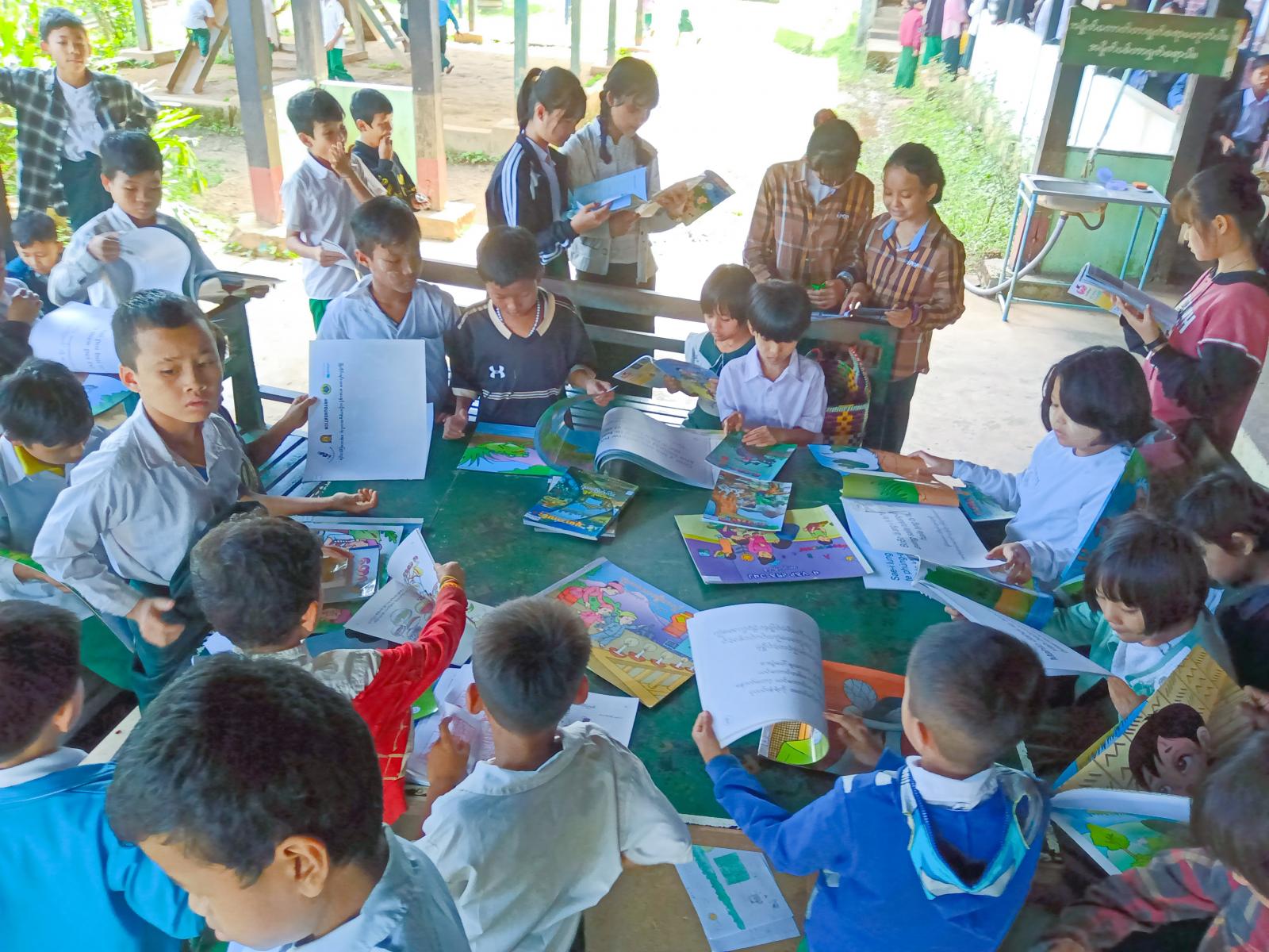 အဆိုပါနယ်လှည့်စာကြည့်တိုက်လုပ်ငန်းတွင် လိပ်သိုမြို့ပြန်ကြားရေးနှင့်ပြည်သူ့ဆက်ဆံရေးဦးစီးဌာနမှ ဝန်ထမ်းများက ကျောင်းသား/ကျောင်းသူများအား အားလပ်ချိန်ကို အကျိုးရှိစွာအသုံးချတတ်စေရန်၊ ဗဟုသုတတိုးပွားစေရေးအတွက် ကျောင်းစာအပြင် ပြင်ပစာပေများကိုပါ လေ့လာဖတ်ရှုကြစေရန်စသည့်နယ်လှည့်စာကြည့်တိုက် ဝန်ဆောင်မှုလုပ်ငန်းနှင့်ပတ်သက်၍ အသိပညာပေး ရှင်းလင်းပြောကြားပြီးနောက် တိုင်းရင်းသားရုပ်ပုံပြစာအုပ်များ၊ ပုံပြင်စာအုပ်များနှင့် မဂ္ဂဇင်းစာအုပ်များကို အခမဲ့ငှားရမ်းပေးခဲ့ကြောင်း သိရသည်။