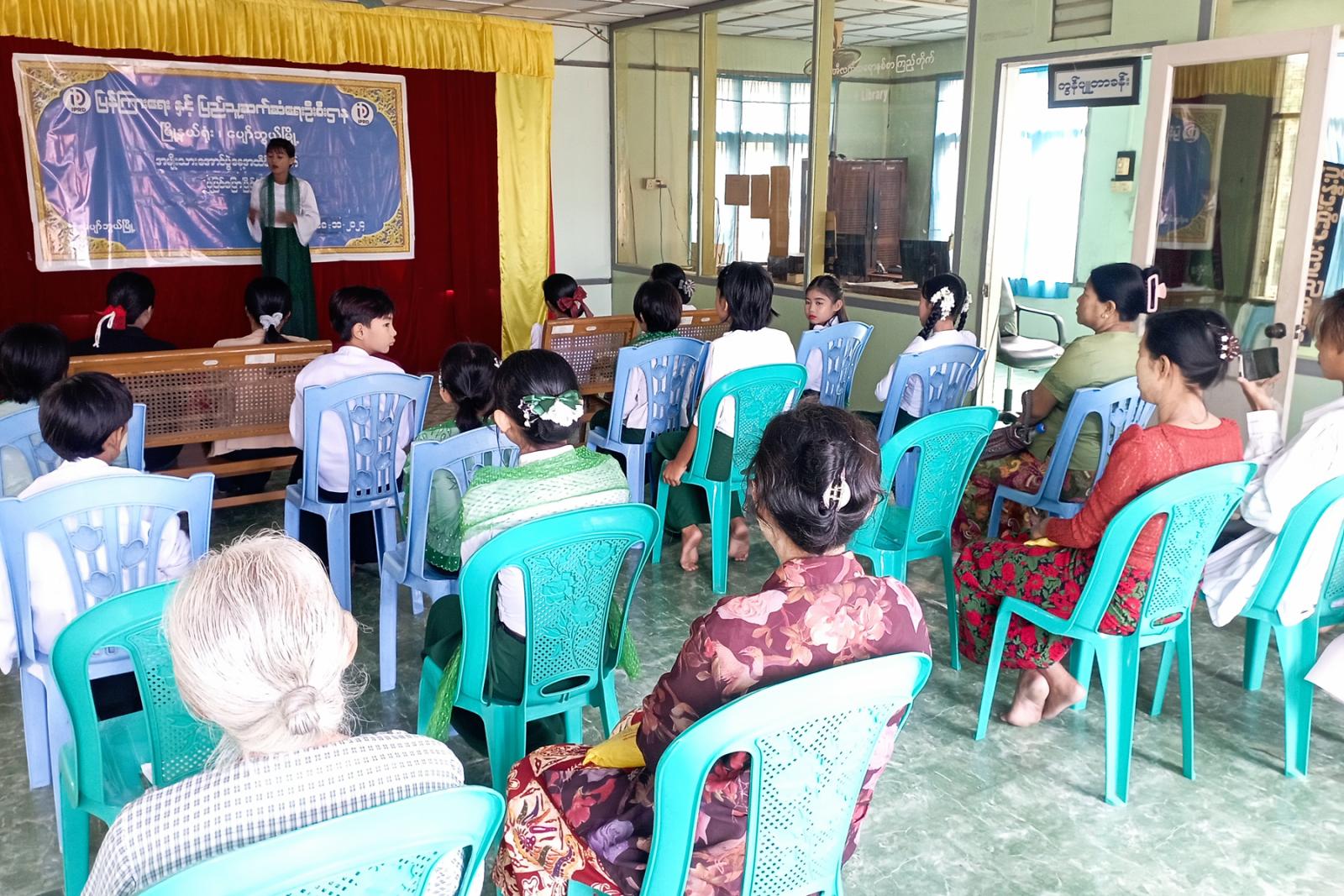 ရှေးဦးစွာ ပြန်ကြားရေးနှင့်ပြည်သူ့ဆက်ဆံရေးဦးစီးဌာန၊ မြို့နယ်ဦးစီးမှူး ဒေါ်စန်းစန်းကြူက (၁၀၄) နှစ်မြောက် အမျိုးသားအောင်ပွဲနေ့အထိမ်းအမှတ် မူလတန်းအဆင့်ကဗျာရွတ်ဆိုပြိုင်ပွဲနှင့် ပုံပြင်ပြောပြိုင်ပွဲကျင်းပရခြင်း၏ ရည်ရွယ်ချက်များနှင့် ပြိုင်ပွဲစည်းမျဉ်းစည်းကမ်းများကို ရှင်းလင်းဆွေးနွေးသည်။