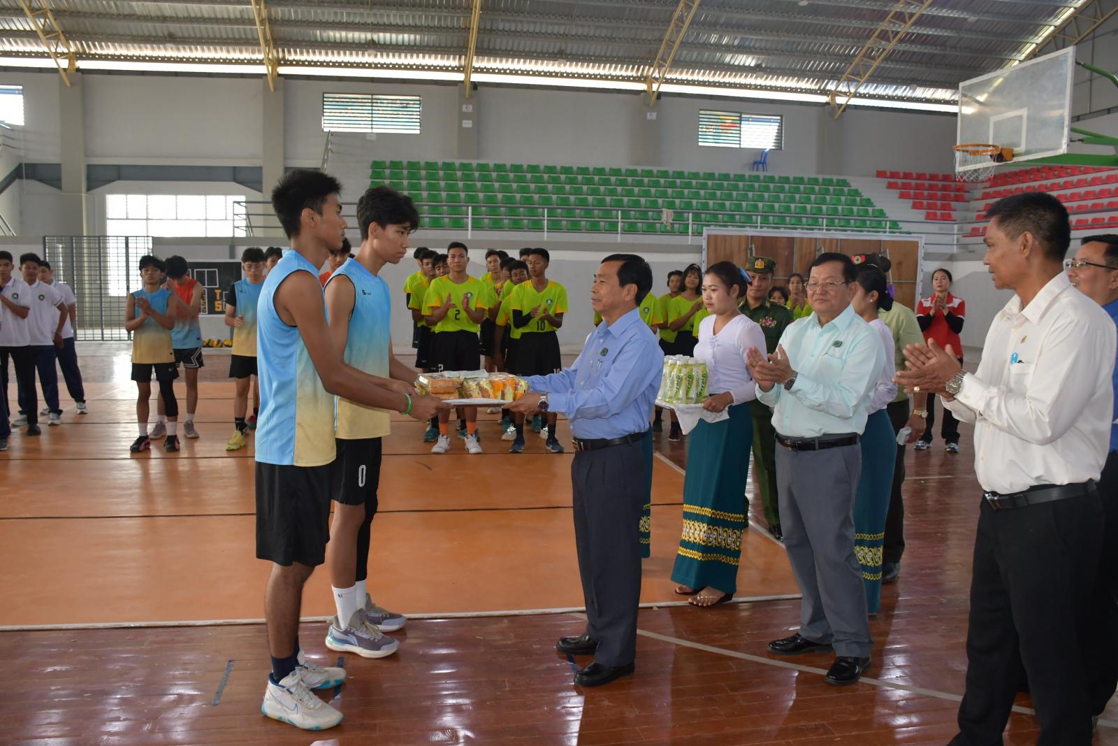 ထို့နောက် အာကစားနည်းအလိုက် အားကစားသမားများ လေ့ကျင့်နေမှု အခြေအနေများကို ကြည့်ရှုအားပေးကာ လိုအပ်သည်များကို ပေါင်းစပ်ဆောင်ရွက်ပေးခဲ့သည်။ ဆက်လက်၍ နေပြည်တော်ကောင်စီဥက္ကဋ္ဌ ဦးသန်းထွန်းဦးနှင့် အဖွဲ့သည် ဇမ္ဗူသီရိမြို့နယ်၊ တဲကြီးကုန်းကျေးရွာအုပ်စု၊ တဲကြီးကုန်းကျေးရွာ ကွင်းအမှတ် ၁၆၅၉၊ တောင်သူ ဦးအောင်ငွေ၏ မိုးစပါးစိုက်ခင်း၌ မိုးစပါးစံကွက်ရိတ်သိမ်းပွဲ အခမ်းအနားကို တက်ရာက်သည်။