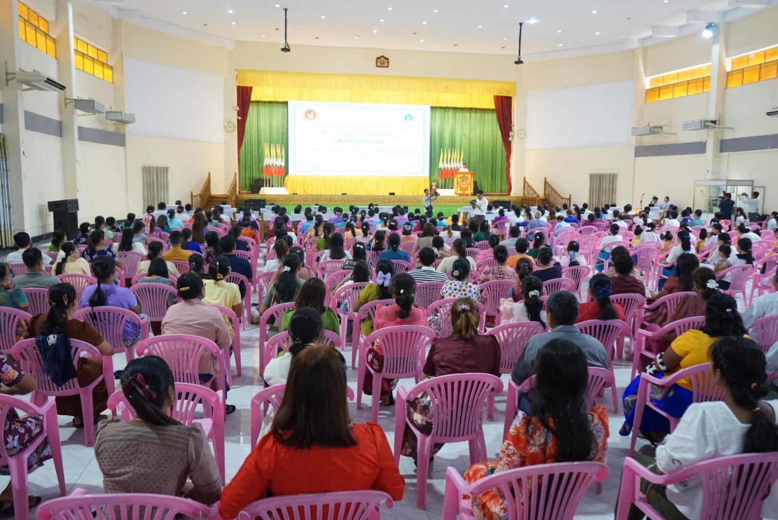 ရှေးဦးစွာ အမှတ်(၃)မူကြိုကျောင်းမှ သားငယ်သမီးငယ်လေးများက “မင်္ဂလာပါ” သီချင်းဖြင့် အခမ်းအနားကိုစတင်ဖွင့်လှစ်ပြီး ပြည်နယ်ဝန်ကြီးချုပ်ဦးအောင်ကြည်သိန်းက နှစ်စဉ် နိုဝင်ဘာလ (၂၀) ရက်နေ့တွင် ကမ္ဘာတစ်ဝှမ်းလုံးရှိ ကလေးများ၏အနာဂတ် ပိုမိုတောက်ပစေနိုင်ရေး၊ ကလေးများကိုကာကွယ်မှုအပြည့်အဝပေးနိုင်ရေး၊ ကလေးများ၏ အခွင့်အရေးပိုမိုရရှိနိုင်စေရေး၊ ကလေးများရင်ဆိုင်ကြုံတွေ့ရတတ်သည့်အခက်အခဲများ အတူတကွဖြေရှင်းပေးနိုင်ရေး စသည့်ရည်ရွယ်ချက်များဖြင့် မြန်မာနိုင်ငံအပါအဝင် ကမ္ဘာ့နိုင်ငံအသီးသီးမှာပါ အထိမ်းအမှတ်အခမ်းအနားများ ကျင်းပပြုလုပ်လေ့ရှိကြောင်း၊ မွန်ပြည်နယ်အနေဖြင့်လည်း ပြည်နယ်၊ ခရိုင်နှင့်မြို့နယ် ကလေးသူငယ်အခွင့်အရေးများဆိုင်ရာကော်မတီများကို အဆင့်ဆင့်ဖွဲ့စည်းခဲ့ပြီး ကလေးသူငယ်အခွင့်အရေးများအတွက် သက်ဆိုင်ရာဌာနအဖွဲ့အစည်းများနှင့် လက်တွဲဆောင်ရွက်လျက်ရှိကြောင်း၊ ကလေးသူငယ်ဥပဒေပါ ကလေးသူငယ်အခွင့်ရေးများကို ကလေးသူငယ်တိုင်းက အပြည့်အဝခံစားခွင့်ရအောင် ကလေးသူငယ်အခွင့်အရေးများဆိုင်ရာကော်မတီဝင်များအပါအဝင် ကလေးသူငယ်များ၏အရေးကိစ္စကိုဆောင်ရွက်နေကြသည့် ဌာနတိုင်း၊ အဖွဲ့အစည်းတိုင်းက လက်တွဲပူးပေါင်းဆောင်ရွက်ပေးကြရန်နှင့် ကလေးသူငယ်များဟာ နောင်တစ်ချိန်မှာတိုင်းပြည်နဲ့လူမျိုးအတွက် အားကိုးအားထားပြုရသော နိုင်ငံ့သားကောင်းရတနာများဖြစ်လာအောင် ဝိုင်းဝန်းကြိုးပမ်းဆောင်ရွက်ပေးကြရန် တိုက်တွန်းပြောကြားပြီး ကမ္ဘာ့ကလေးများနေ့အထိမ်းအမှတ် Video Clip ကို ပြသခဲ့သည်။