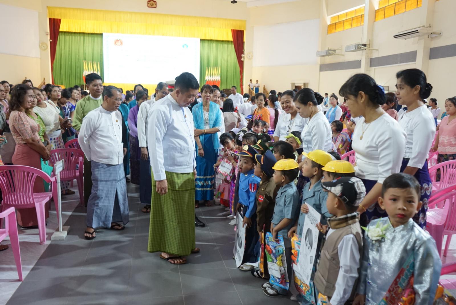 ထို့နောက် ပြည်နယ်ဝန်ကြီးချုပ်၊ ပြည်နယ်တရားလွှတ်တော်တရားသူကြီးချုပ်နှင့် ပြည်နယ်အစိုးရအဖွဲ့ဝင်ဝန်ကြီးများသည် အမှတ်(၁)၊ အမှတ်(၂)နှင့် အမှတ်(၃) မူလတန်းကြိုကျောင်းများမှ သားငယ်၊ သမီးငယ်လေးများ၏ “ပြည်ထောင်စုအင်အား” ၊ “လောကအားမာန်”နှင့် “မိုးလင်းမှသိမယ်” သီချင်းတို့ဖြင့်လည်းကောင်း၊ ပုဂ္ဂလိကမူကြို၊ ကလေးပြုစုရေးဌာနမူကြိုကျောင်းမှ သားငယ်သမီးငယ်လေးများ၏ တေးသရုပ်ဖော်အကအလှတို့ဖြင့်လည်းကောင်း၊ မော်လမြိုင်လူငယ်သင်တန်းကျောင်းမှ ကျောင်းသားများက “လောကကြီးရဲ့မောင်းနှင်အား” သီချင်းဖြင့် သီဆိုဖျော်ဖြေနေမှုများကို ကြည့်ရှုအားပေးပြီး သားငယ်၊ သမီးငယ်လေးများအား အမှတ်တရလက်ဆောင်များပေးအပ်ကာ သားငယ်သမီးငယ်လေးများကို ရင်းရင်းနှီးနှီးလိုက်လံနှုတ်ဆက်ခဲ့ကြောင်း သိရှိရသည်။