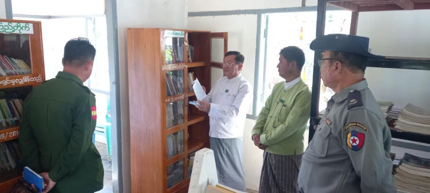နေပြည်တော်ကောင်စီဝင် ဦးမြင့်စိုးသည်၊ တာဝန်ရှိသူများနှင့်အတူ ယမန်နေ့နံနက်ပိုင်းတွင် လယ်ဝေးမြို့နယ်နှင့် ဒက္ခိဏသီရိမြို့နယ်အတွင်း မြန်မာနိုင်ငံစာကြည့်တိုက်များဖွံ့ဖြိုးတိုးတက်ရေး ပူးပေါင်းဆောင်ရွက်မှုကော်မတီရန်ပုံငွေဖြင့် အသစ်ဆောက်လုပ်လျက်ရှိသည့် ကျေးရွာစာကြည့်တိုက်နှင့် ပြုပြင်လျက်ရှိသည့် စာကြည့်တိုက်များအား သွားရောက်ကြည့်ရှုစစ်ဆေးခဲ့သည်။