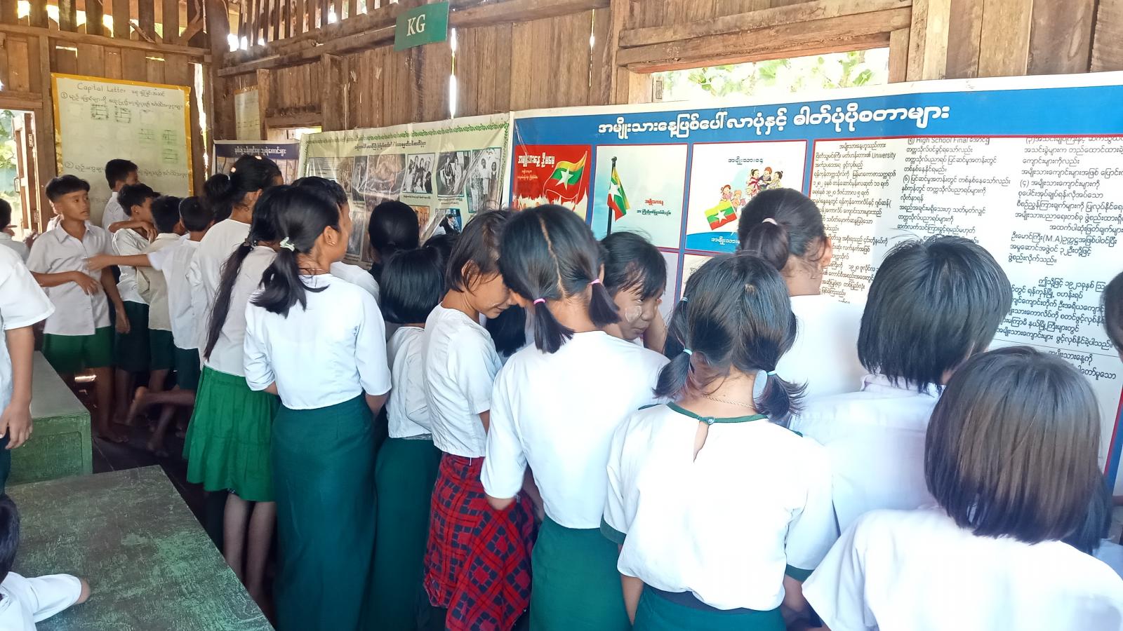 ထို့နောက် ပြန်ကြားရေးနှင့်ပြည်သူ့ဆက်ဆံရေးဦးစီးဌာနမှ ပြသထားသော အမျိုးသားအောင်ပွဲနေ့ ဖြစ်ပေါ်လာပုံသမိုင်းကြောင်းနှင့် နယ်ချဲ့ဆန့်ကျင်ရေး သူရဲကောင်းများပါဝင်သော အသိပညာပေး နံရံကပ်စာစောင်များကို ပြသဆောင်ရွက်ထားရာ ကျောင်းသား၊ ကျောင်းသူများက စိတ်ဝင်စားစွာကြည့်ရှု လေ့လာမှတ်သားခဲ့ကြောင်း သိရသည်။