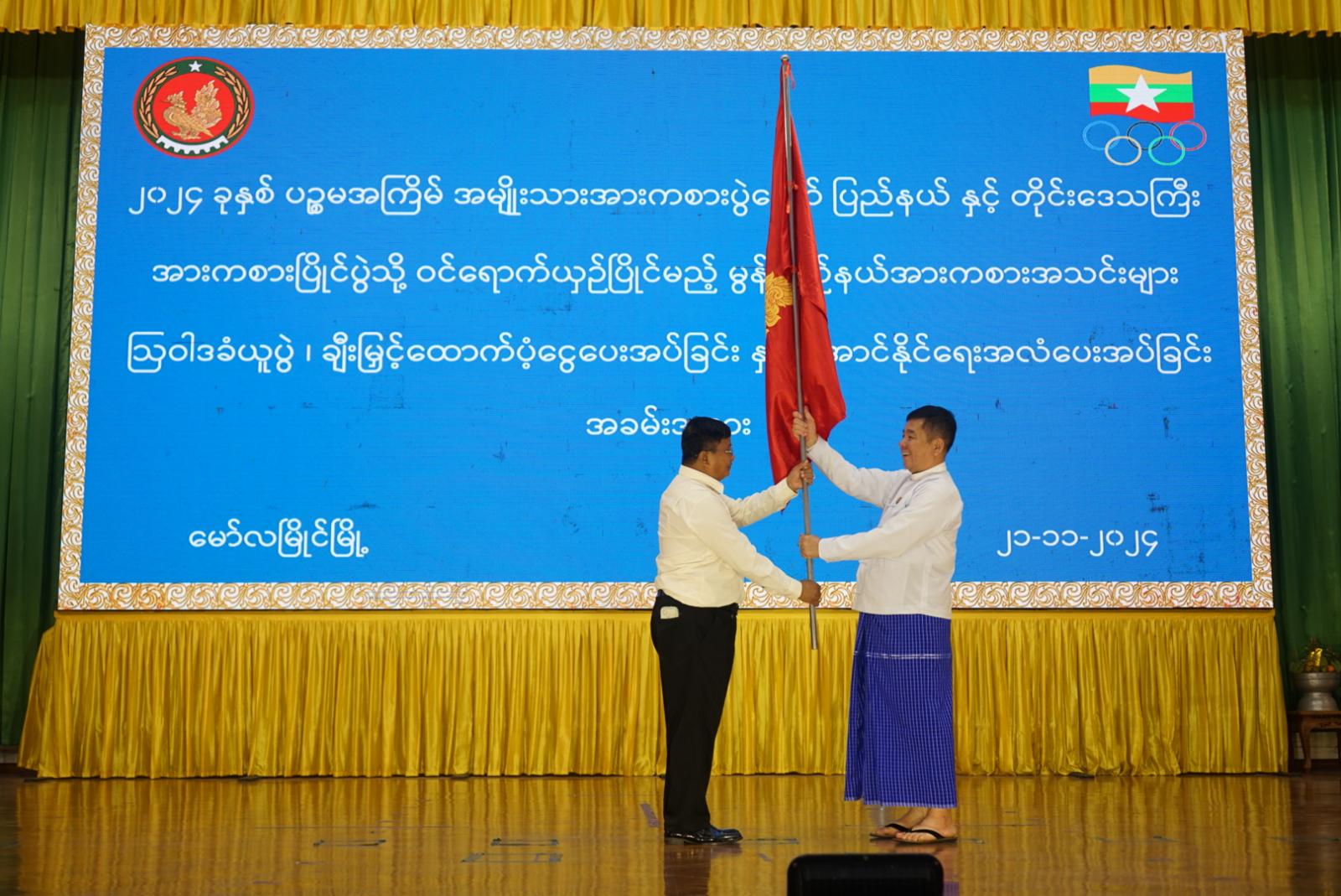 ၂ဝ၂၄ ခုနှစ် ပဉ္စမအကြိမ် အမျိုးသားအားကစားပွဲတော် တိုင်းဒေသကြီးနှင့်ပြည်နယ် အားကစားပြိုင်ပွဲသို့ ဝင်ရောက်ယှဉ်ပြိုင်မည့် မွန်ပြည်နယ်အားကစားအသင်းများ ဩဝါဒခံယူပွဲ ၊ ချီးမြှင့်ထောက်ပံ့ငွေပေးအပ်ခြင်းနှင့် အောင်နိုင်ရေးအလံပေးအပ်ခြင်း အခမ်းအနားကို ယမန်နေ့ နံနက်ပိုင်းက မော်လမြိုင်မြို့၊ ပြည်နယ်ခန်းမ၌ ကျင်းပပြုလုပ်ရာ ရှေးဦးစွာ မွန်ပြည်နယ်အားကစားအသင်း အဖွဲ့ခေါင်းဆောင် ၊ အုပ်ချုပ်သူနှင့် နည်းပြများမှ မိတ်ဆက် ဂါရဝပြုခဲ့ကြပြီး ပြည်နယ်ဝန်ကြီးချုပ်က မွန်ပြည်နယ်တွင် ဘက်စုံ၊ ကဏ္ဍစုံဖွံ့ဖြိုးတိုးတက်ရေး ဦးတည်ကြိုးပမ်း ဆောင်ရွက်ရာတွင် အားကစားကဏ္ဍဖွံ့ဖြိုးတိုးတက်စေရေး အထူးအလေးထား ဆောင်ရွက်လျက်ရှိပါကြောင်း၊ အားကစားသမားများအနေဖြင့် ဇွဲ၊ လုံးလ၊ ဝီရိယအပြည့်နှင့် ပြင်းပြင်းထန်ထန် လေ့ကျင့်ကြိုးစားကြရန် လိုအပ်သလို ရုပ်ပိုင်းဆိုင်ရာကြံခိုင်မှုနှင့် ကျွမ်းကျင်ပိုင်နိုင်မှုတို့ကိုပေါင်းစပ်၍ စိတ်ဓါတ်ကောင်းမွန်ခြင်းကိုအခြေခံပြီး တရားမျှတစွာဝင်ရောက် ယှဉ်ပြိုင်ကြရန်လိုကြောင်း၊ ပြိုင်ပွဲတိုင်းမှာ အနိုင်ရရှိကာ ပြည်နယ်ဂုဏ်ကို မြှင့်တင်ပေးနိုင်အောင်ရုံမျှမကနိုင်ငံ့ဂုဏ်ဆောင် အားကစားသမားများဖြစ်အောင်လည်း စွမ်းစွမ်းတမံကြိုးစားသွားကြစေလိုကြောင်းနှင့် လိုအပ်သည်များကိုလည်း အဖက်ဖက်က ကူညီပံ့ပိုးပေးသွားမည်ဖြစ်ကြောင်း အမှာစကားပြောကြားခဲ့သည်။