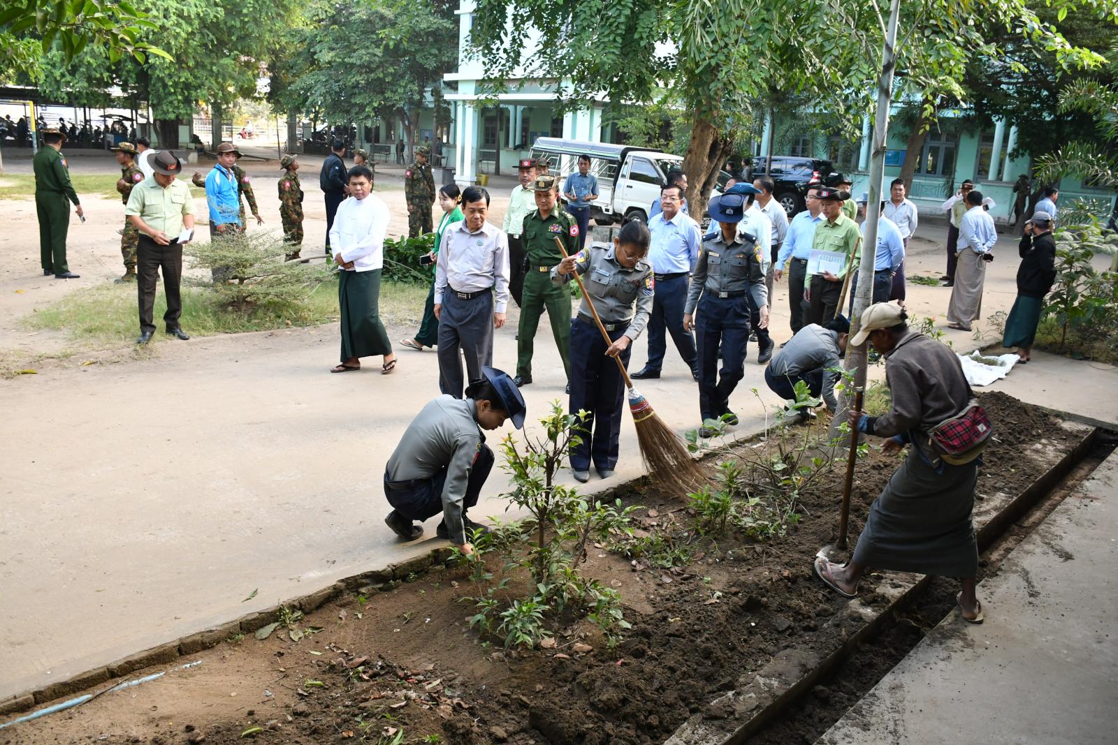 နေပြည်တော်ကောင်စီဥက္ကဋ္ဌ ဦးသန်းထွန်းဦးသည် နေပြည်တော်ကောင်စီဝင်များ၊ နေပြည်တော် စည်ပင်သာယာရေးကော်မတီဝင်များ၊ ဌာနဆိုင်ရာ တာဝန်ရှိသူများလိုက်ပါလျက် ယနေ့နံနက်ပိုင်းတွင် ဇမ္ဗူသီရိမြို့နယ်၊ သပြေကုန်းရပ်ကွက်ရှိ အခြေခံပညာအထက်တန်းကျောင်းခွဲ (အ.လ.က-၃) ကျောင်းအတွင်း၌ အထွေထွေအုပ်ချုပ်ရေးဦးစီးဌာနမှ ဝန်ထမ်းများ၊ ဌာနဆိုင်ရာများမှ ဝန်ထမ်းများ၊ တပ်မတော်သားများ၊ မြန်မာနိုင်ငံရဲတပ်ဖွဲ့၊ မီးသတ်တပ်ဖွဲ့ဝင်များ၊ စည်ပင်သာယာရေးအဖွဲ့များ၊ ကြက်ခြေနီတပ်ဖွဲ့ဝင်များ၊ လူမှုရေးအသင်းအဖွဲ့များ၊ ဒေသခံပြည်သူများနှင့် ဆရာ/ ဆရာမများက ပတ်ဝန်းကျင်သန့်ရှင်းသာယာရေး၊ သစ်ပင်များအလင်းဖွင့်ခြင်း၊ ပေါင်းမြက်များနှင့် ရေမြောင်းများအတွင်း စုပေါင်းသန့်ရှင်းရေး ဆောင်ရွက်နေမှုကို ကြည့်ရှုအားပေးခဲ့ကြသည်။