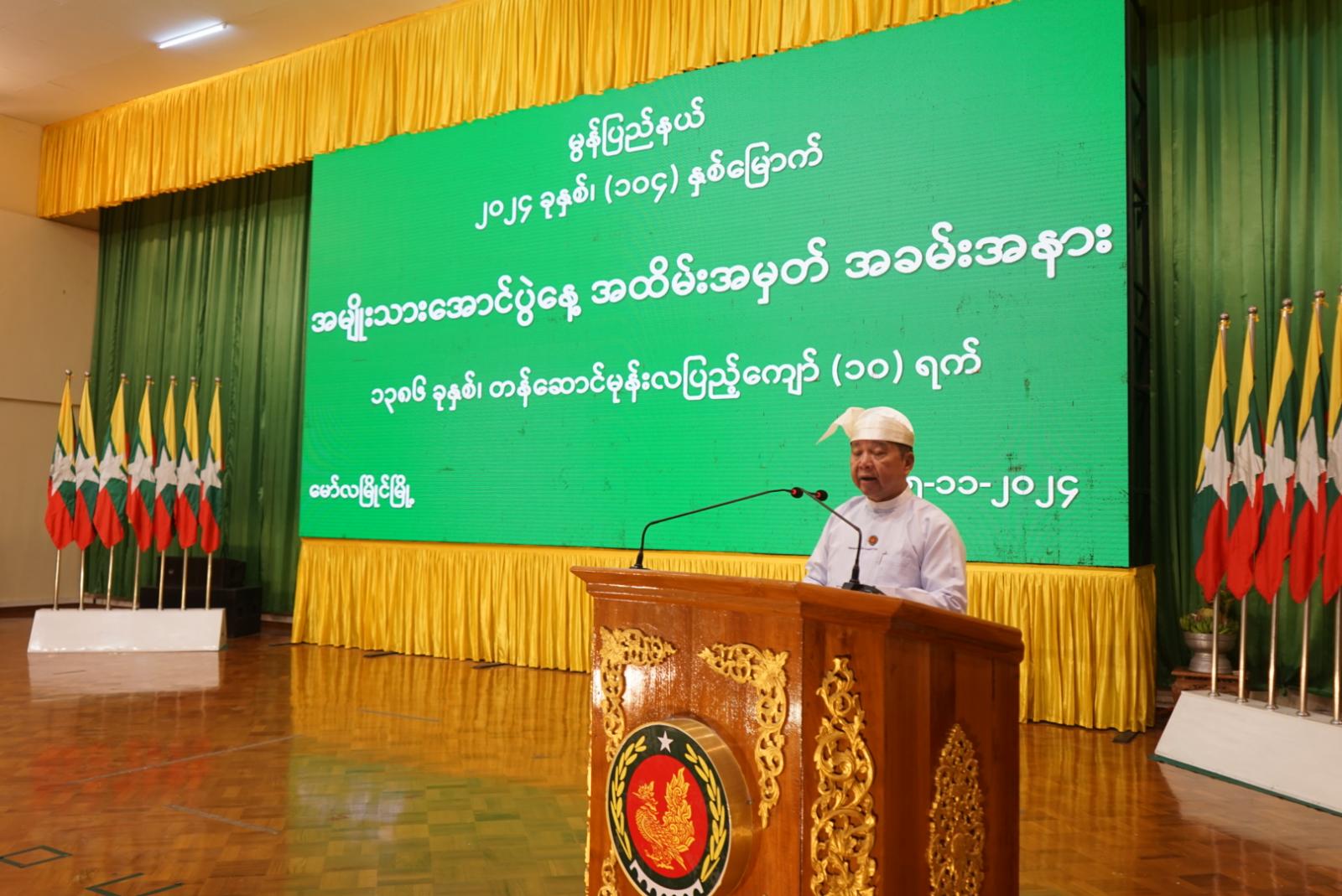 ၂ဝ၂၄ ခုနှစ်၊ (၁ဝ၄)နှစ်မြောက် အမျိုးသားအောင်ပွဲနေ့ ဆောင်ပုဒ်ဖြစ်သည့် “ပြည်ထောင်စုငြိမ်းချမ်းရေးမှသည် နိုင်ငံတော်ဖွံ့ဖြိုးတိုးတက်ရေးဆီသို့” ဆောင်ပုဒ်နှင့်အညီ (၁ဝ၄) နှစ်မြောက် အမျိုးသားအောင်ပွဲနေ့ အထိမ်းအမှတ်အခမ်းအနားကို ယနေ့နံနက်ပိုင်းက မော်လမြိုင်မြို့၊ ပြည်နယ်ခန်းမ၌ ကျင်းပပြုလုပ်ရာ ပြည်နယ်ဝန်ကြီးချုပ် ဦးအောင်ကြည်သိန်း၊ ပြည်နယ်တရားလွှတ်တော် တရားသူကြီးချုပ်၊ ပြည်နယ်အစိုးရအဖွဲ့ဝင် ဝန်ကြီးများ၊ ပြည်နယ်အဆင့်ဌာနဆိုင်ရာ တာဝန်ရှိသူများ၊ ဆရာ၊ ဆရာမများ၊ ကျောင်းသား၊ ကျောင်းသူများ တက်ရောက်ခဲ့ကြသည်။