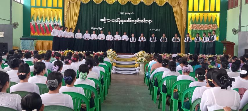 ထို့နောက် အ-ထ-က (၁)မှ ကျောင်းသား/ကျောင်းသူများက မြန်မာ့ကျောင်းသီချင်းဖြင့် သီဆိုဖျော်ဖြေ၍ အခမ်းအနားကို ရုပ်သိမ်းခဲ့ကြောင်း သိရသည်။