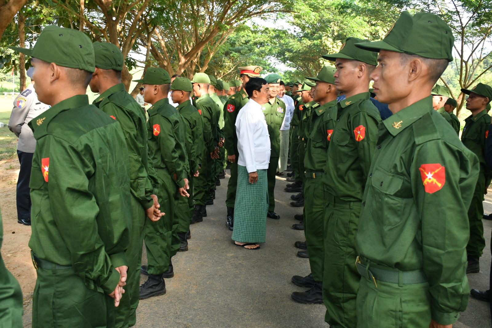ပြည်ထောင်စုနယ်မြေ၊ နေပြည်တော်ရှိ ပြည်သူ့စစ်မှုထမ်းသင်တန်း အမှတ်စဉ် (၇/၂၀၂၄) ဖွင့်ပွဲအခမ်းအနားကို ယနေ့နံနက်ပိုင်းတွင် နေပြည်တော်၊ ဥတ္တရသီရိမြို့နယ်ရှိ အမှတ် (၂) တပ်မတော်တန်းမြင့်လေ့ကျင့်ရေးကျောင်း (မိုးစွေ) ၌ ကျင်းပရာ နေပြည်တော်ကောင်စီဥက္ကဋ္ဌ ဦးသန်းထွန်းဦး၊ နေပြည်တော်တိုင်းစစ်ဌာနချုပ် တိုင်းမှူး ဗိုလ်ချုပ်စိုးမင်း၊ နေပြည်တော်ကောင်စီဝင်များ၊ နေပြည်တော်အဆင့်ဌာနဆိုင်ရာများ၊ အမှတ် (၂) တပ်မတော် တန်းမြင့်လေ့ကျင့်ရေးကျောင်း (မိုးစွေ) ကျောင်းအုပ်ကြီးနှင့် တပ်မတော်အရာရှိကြီးများ၊ ခရိုင်/ မြို့နယ်စီမံအုပ်ချုပ်ရေးအဖွဲ့ဥက္ကဋ္ဌများနှင့် အဖွဲ့ဝင်များ၊ သင်တန်းသားများ တက်ရောက်ကြသည်။