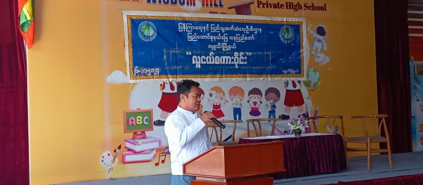 ထို့နောက် Wisdom Hill ကိုယ်ပိုင်အထက်တန်းကျောင်းမှ ကျောင်းအုပ်ဆရာမကြီး ဒေါ်ခင်စမ်းတင့်က ကျေးဇူးတင်စကားပြောကြားခဲ့သည်။