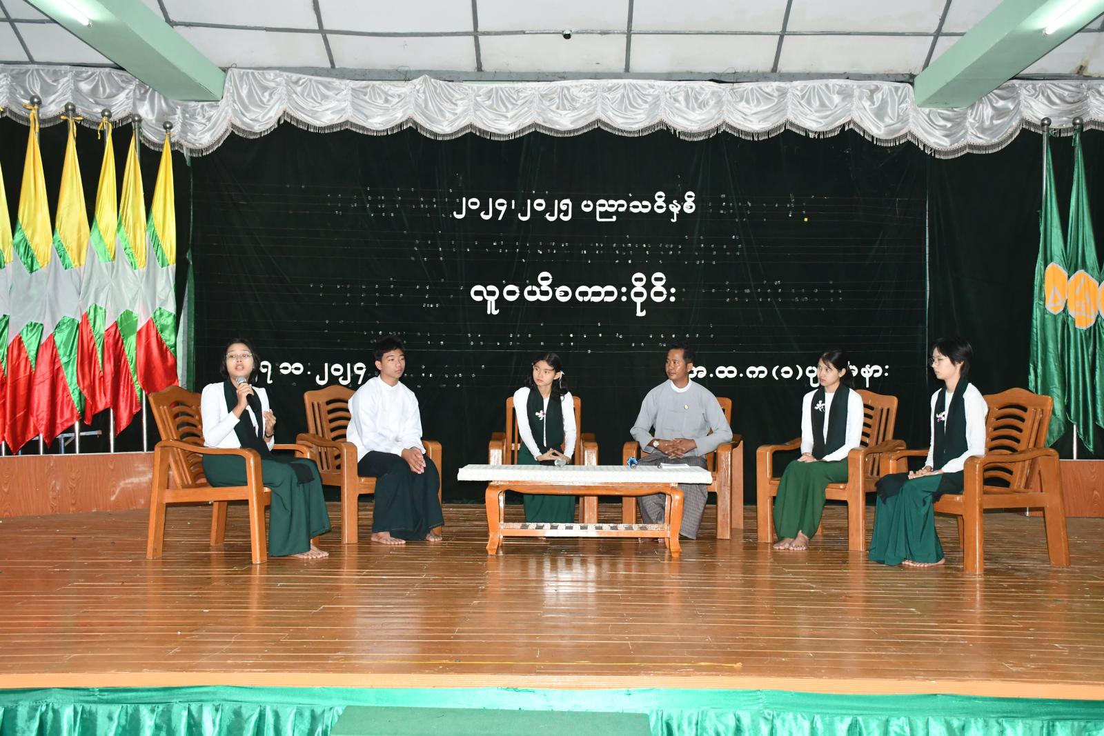 ဆက်လက်၍ လူငယ်စကားဝိုင်းကျင်းပခဲ့ရာ ဦးဆောင်ဆွေးနွေးသူအဖြစ် ပျဉ်းမနားမြို့နယ် ပြန်ကြားရေးနှင့်ပြည်သူ့ဆက်ဆံရေးဦးစီးဌာနမှ မြို့နယ်ဦးစီးမှူး ဦးဇော်မင်းလွင်နှင့်အတူ Grade-11 ကျောင်းသူ မနန်းမေသီရိက လူငယ်နှင့်စာဖတ်ခြင်း၊ Grade-11 ကျောင်းသူ မချောယမင်းက လူငယ်တို့အတွက် အချိန်၏တန်ဖိုး၊ Grade-11 ကျောင်းသူ မသံသာဖြိုးက လူငယ်တို့အတွက် စာဖတ်ခြင်း၏အရေးပါမှု၊ Grade-11 ကျောင်းသား မောင်ကောင်းစံဟိန်းက လူငယ်နှင့်နည်းပညာ၊ Grade-11 ကျောင်းသူ မယွန်းပြည့်ပြည့်အောင်က အချိန်ကိုတန်ဖိုးရှိစွာအသုံးချနည်းစသည့် ခေါင်းစဉ်များဖြင့် အသီးသီးဆွေးနွေး ပြောကြားခဲ့သည်။ ထို့နောက် လူငယ်စကားဝိုင်းသို့ တက်ရောက်လာကြသည့် ကျောင်းသား၊ ကျောင်းသူများက ဆွေးနွေးမှုများနှင့်ပတ်သက်၍ သိရှိလိုသည်များကိုမေးမြန်းခဲ့ရာ လူငယ်စကားဝိုင်းတွင် ဆွေးနွေးပြောကြားပေးသော ကျောင်းသား၊ ကျောင်းသူများက ပြန်လည်ဖြေကြားပေးခဲ့ကြပြီး မြို့နယ်ဦးစီးမှူး ဦးဇော်မင်းလွင်က မေးမြန်းချက်များအပေါ်ထပ်ဆင့်ရှင်းလင်းဖြေကြားခဲ့ကြောင်း သိရသည်။