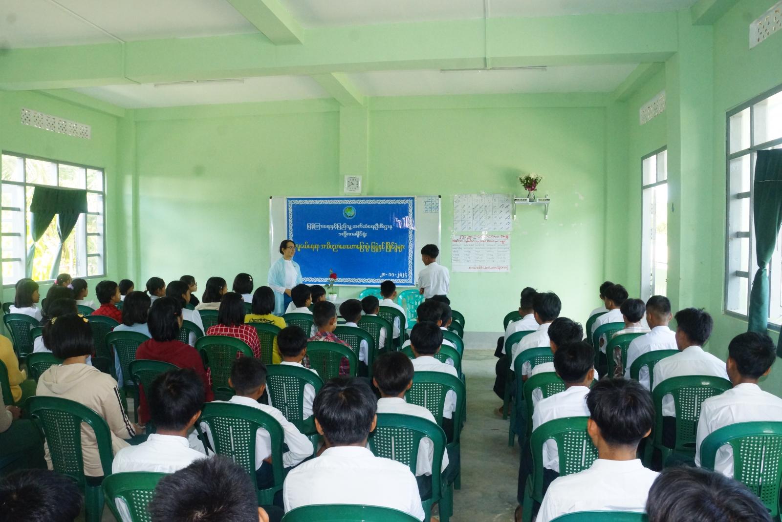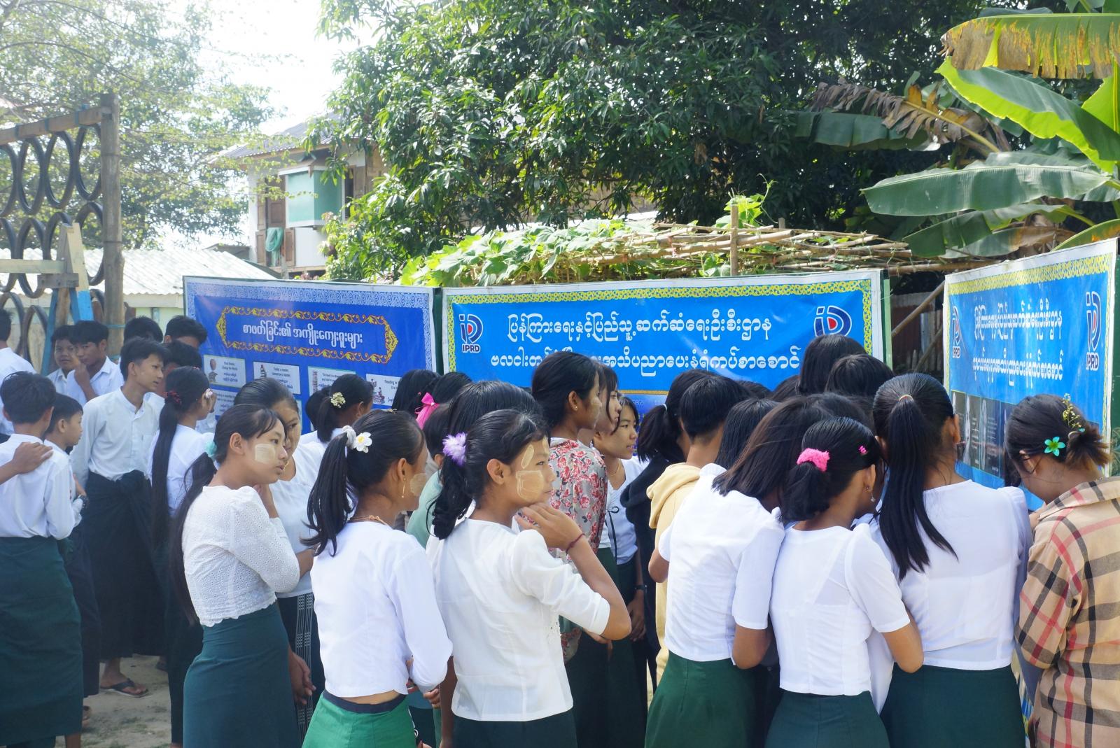 အခမ်းအနားအပြီးတွင် ဆရာ၊ ဆရာမများနှင့် ကျောင်းသား၊ ကျောင်းသူများက ပြန်ကြားရေးနှင့်ပြည်သူ့ဆက်ဆံရေးဦးစီးဌာနမှ ခင်းကျင်းပြသထားသည့် ဗလငါးတန်ဖွံ့ဖြိုးရေး အသိပညာပေးနံရံကပ်စာစောင်များနှင့် လူငယ်ရေးရာအသိပညာပေး နံရံကပ်စာစောင်များကို စိတ်ပါဝင်စားစွာ ကြည့်ရူလေ့လာခဲ့ကြောင်း သိရသည်။