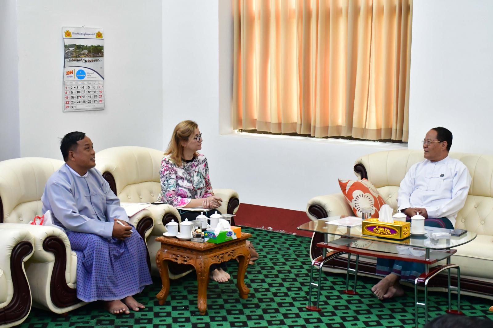 ကရင်ပြည်နယ်အစိုးရအဖွဲ့ ပြည်နယ်ဝန်ကြီးချုပ်ဦးစောမြင့်ဦးသည် ပြည်နယ်အစိုးရအဖွဲ့ဝင်များ၊ ဌာနဆိုင်ရာတာဝန်ရှိသူများနှင့်အတူ ယမန်နေ့နံနက်ပိုင်းက အပြည်ပြည်ဆိုင်ရာကြက်ခြေနီကော်မတီ (International Committee of the Red Cross-ICRC)ရုံး၏ မြန်မာနိုင်ငံ အရှေ့တောင်ပိုင်း ကွင်းဆင်းအဖွဲ့ခေါင်းဆောင် Ms.Cherine Pollini နှင့်အဖွဲ့အား ပြည်နယ်အစိုးရအဖွဲ့ရုံးဧည့်ခန်းမ၌ လက်ခံတွေ့ဆုံသည်။