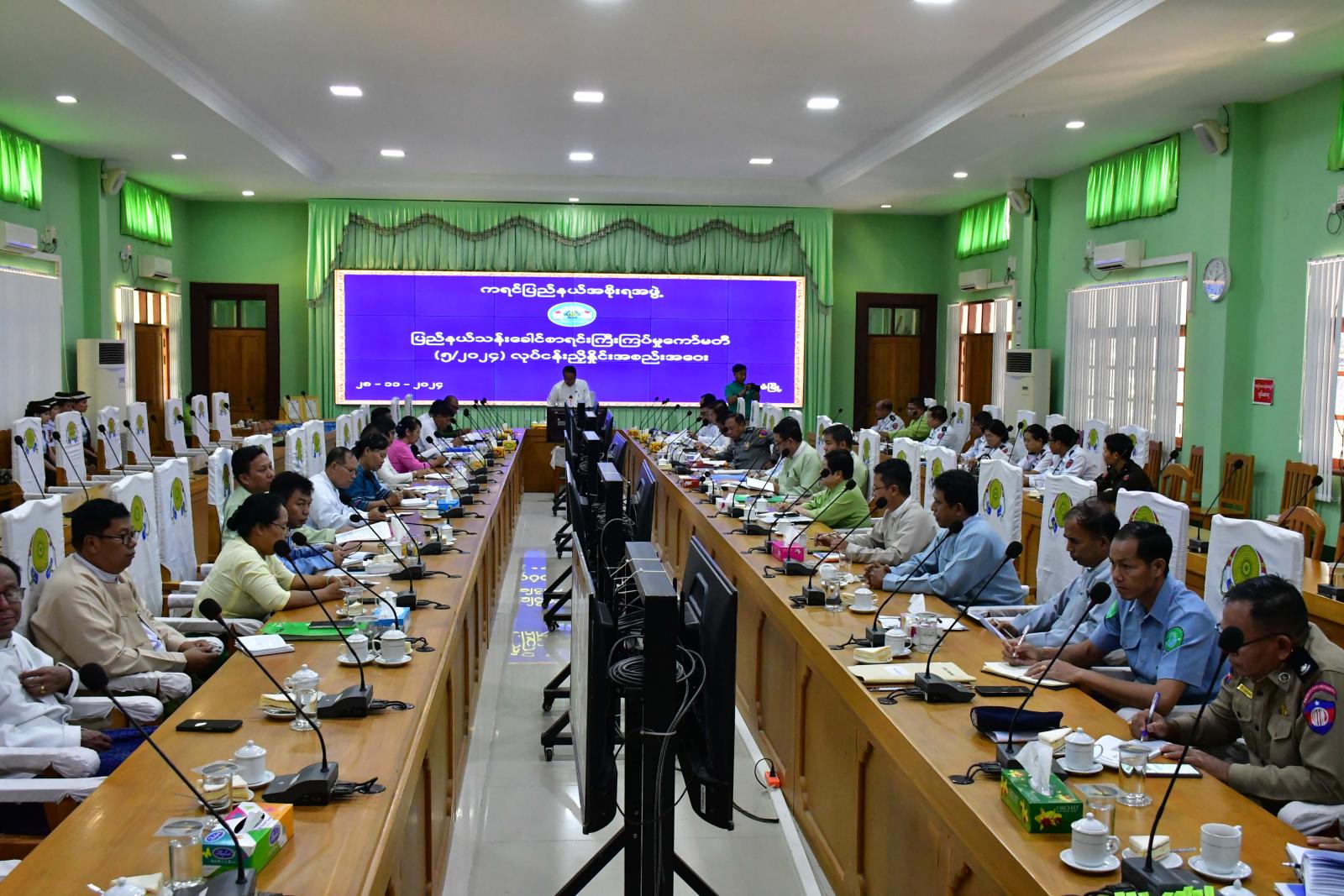 ထို့နောက် ပြည်နယ်သန်းခေါင်စာရင်းကြီးကြပ်မှုကော်မတီအတွင်းရေးမှူး လူဝင်မှုကြီးကြပ်ရေးနှင့် ပြည်သူ့အင်အားဝန်ကြီးဌာန ပြည်နယ်ဦးစီးမှူး ညွှန်ကြားရေးမှူးဦးကျော်မြင့်က ဗဟိုသန်းခေါင် စာရင်းကော်မရှင်မှပေးပို့သည့် ဂုဏ်ပြုမှတ်တမ်းလွှာ၊ ဗဟိုသန်းခေါင်စာရင်းကော်မရှင်သို့ ပြီးစီးမှုတင်ပြချက်၊ ကောက်ယူပြီးစီးမှုရာနှုန်း(၃)မျိုး၊ ကောက်ယူပြီးစီးမှုအရ လူဦးရေဆိုင်ရာတင်ပြချက်၊ ကောက်ယူရန်ကျန် ရပ်ကွက်၊ကျေးရွာအုပ်စု၊ ကျေးရွာစာရင်းတို့ကို ရှင်းလင်းတင်ပြပြီး ခရိုင်သန်ခေါင်းစာရင်းကော်မတီဥက္ကဋ္ဌများက သက်ဆိုင်ရာခရိုင်/မြို့နယ်များအလိုက် မြေပြင်ကွင်း ဆင်းစာရင်းကောက်ယူပြီးစီးမှု၊ ပန်းခင်းစီမံချက်အဆင့်(၃)ဆက်လက်ဆောင်ရွက်နေမှုနှင့် ပြီးစီးမှု အခြေအနေများကို ရှင်းလင်းတင်ပြကြရာ တက်ရောက်လာသူများက ဝိုင်းဝန်းအကြံပြုဆွေးနွေး တင်ပြကြသည်။