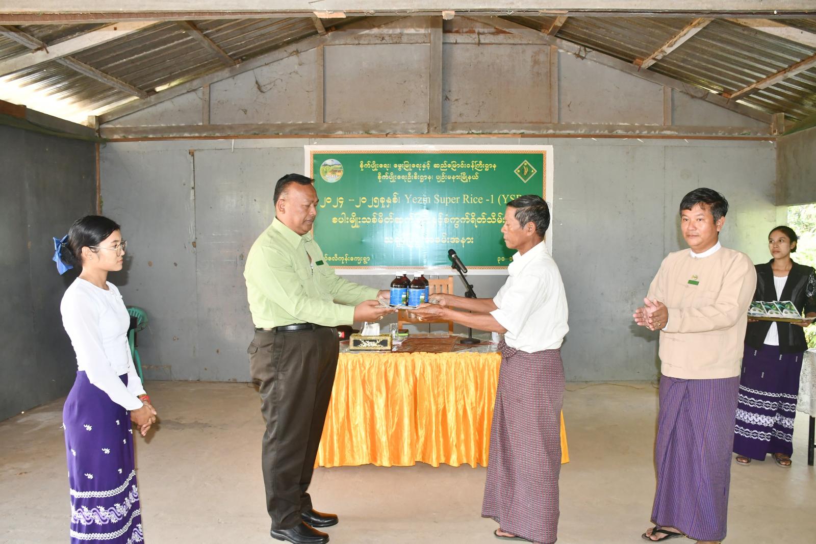 ယင်းနောက် ပျဉ်းမနားခရိုင် စီမံအုပ်ချုပ်ရေးအဖွဲ့ဥက္ကဋ္ဌနှင့် တာဝန်ရှိသူများက မြန်မာနိုင်ငံဆန်စပါးအသင်းချုပ်မှ တောင်သူများအား ထောက်ပံ့သည့် ရွက်ဖြန်းဆေးနှင့် ပိုးသတ်ဆေးများအား တောင်သူများထံ အသီးသီး ထောက်ပံ့ပေးအပ်ခဲ့ကြသည်။