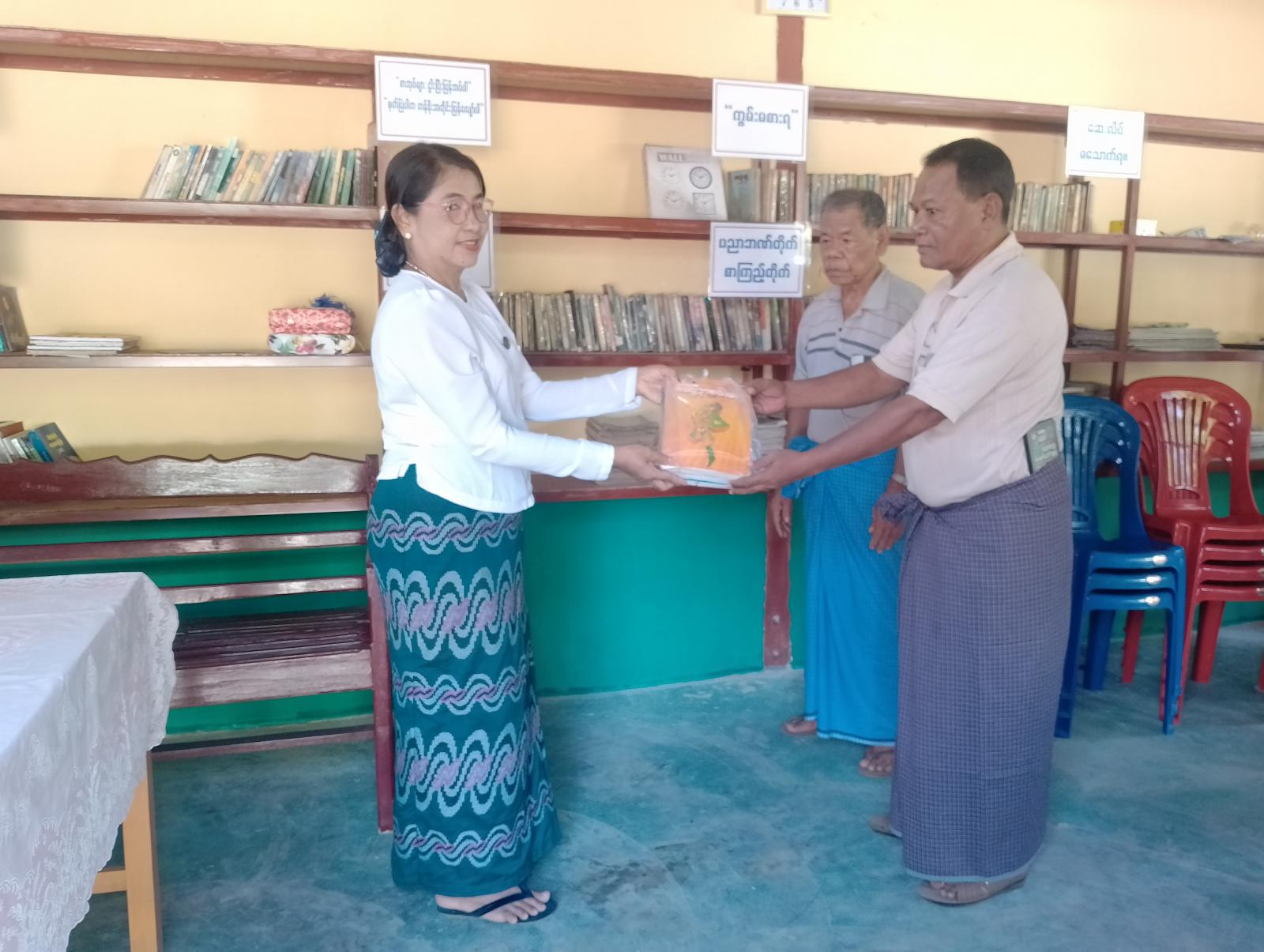 ထို့နောက် မြို့နယ်စီမံအုပ်ချုပ်ရေးအဖွဲ့ဥက္ကဋ္ဌက စာကြည့်တိုက်များဖွံ့ဖြိုးတိုးတက်ရေးအတွက် စာကြည့်တိုက်ပြုပြင်မွမ်းမံရန်နှင့် ပရိဘောဂအထောက်အကူပြုပစ္စည်းများ ဖြည့်ဆည်းပေးခြင်းနှင့်သုတ၊ ရသစာအုပ်များ ဖြည့်ဆည်းပေးခြင်းတို့အတွက် နိုင်ငံတော်မှ ငွေကျပ် သိန်း ၅၀၊ ကျေးရွာပြည်သူများမှ ငွေကျပ်(၁၇)သိန်းဖြင့် ပြုပြင်မွမ်းမံတည်ဆောက်ခဲ့ခြင်းဖြစ်ပြီး ယခုဖွင့်လှစ်ပေးသော စာကြည့်တိုက်အား ရေရှည်ဖွံ့ဖြိုးတိုးတက်စေရန် ဒေသခံများက ဝိုင်းဝန်းထိန်းသိမ်းဆောင်ရွက်ကြရန် ပြောကြားခဲ့သည်။ ဆက်လက်၍ စာအုပ်၊ စာစောင်များကို စေတနာရှင်အလှူရှင်များက လှူဒါ န်းပေးရာ စာကြည့်တိုက်ကော်မတီဥက္ကဋ္ဌ ဦးစိုးခိုင်က လက်ခံရယူခဲ့သည်။