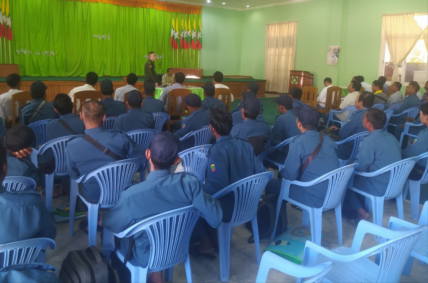 ဦးစွာ မြို့နယ်စီမံအုပ်ချုပ်ရေးအဖွဲ့ဥက္ကဋ္ဌ ဦးရဲမြတ်သိန်းက အဖွင့်အမှာစကားပြောကြားပြီး မြို့နယ်စီမံအုပ်ချုပ်ရေးအဖွဲ့ဝင်(၁) ဗိုလ်မှူးပြည့်ဖြိုးမင်းက အမှာစကားပြောကြားကာ ပြည်သူ့လုံခြုံရေးနှင့်အကြမ်းဖက်နှိမ်းနင်းရေးအဖွဲ့ဝင်များအား တစ်ဦးလျှင် ယူနီဖောင်းဝတ်စုံ(၂)စုံ၊ ဦးထုပ်(၁)လုံး၊ ခြေအိတ်(၁)စုံ၊ ဖိနပ်(၁)စုံနှင့် အိပ်ယာခင်းဖော့ဖျာ(၁)ချပ်တို့အား စနစ်တကျထုတ်ပေးခဲ့ကြောင်း သိရသည်။