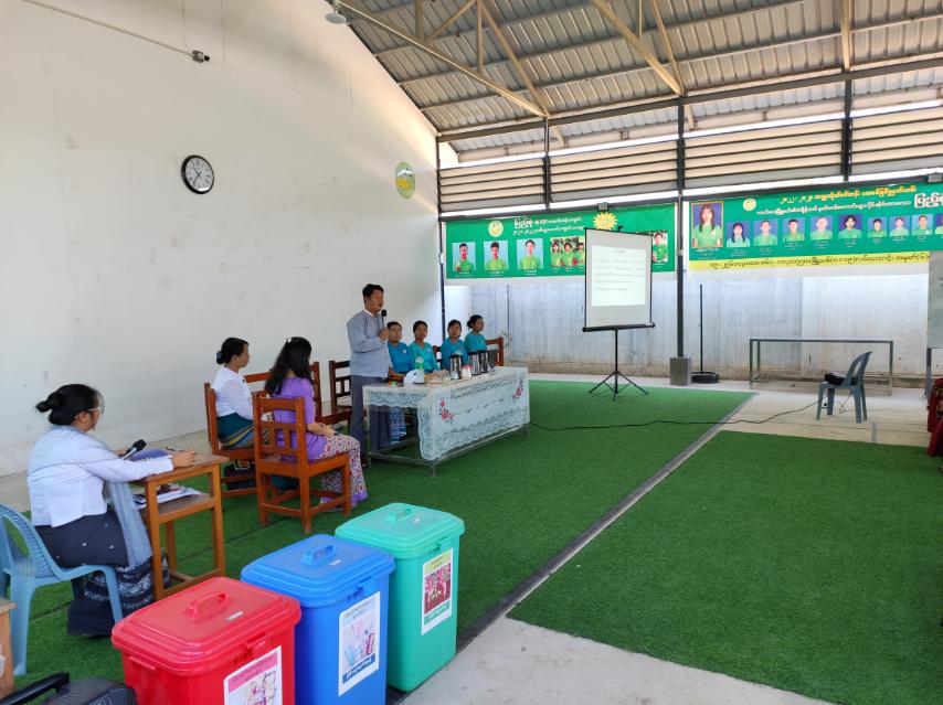 ရှေးဦးစွာ လယ်ဝေးခရိုင်၊ ပတ်ဝန်းကျင်ထိန်းသိမ်းရေးဦးစီးဌာနမှ လက်ထောက်ညွှန်ကြားရေးမှူး ဦးကျော်မျိုးလင်းက အမှာစကား ပြောကြားခဲ့သည်။ ထို့နောက် ဦးစီးအရာရှိ ဒေါ်ဆွေဆွေသွယ်က "အမျိုးသမီးကဏ္ဍနှင့် သဘာဝပတ်ဝန်းကျင်"ခေါင်းစဉ်ဖြင့်လည်းကောင်း၊ ဒုတိယဦးစီးမှူး ဦးရဲနိုင်ဝင်းက "မီးခိုးမြူငွေ့ညစ်ညမ်းမှုလျှော့ချရေး"ခေါင်းစဉ်ဖြင့်လည်းကောင်း အသိပညာပေး ဟောပြောခဲ့သည်။ ဆက်လက်၍ PM2.5 အကြောင်း အသိပညာပေးဗီဒီယိုပြသကာ ကျောင်းသား၊ ကျောင်းသူများအား ဉာဏ်စမ်းမေးခွန်းများ မေးမြန်းပြီး အဖြေမှန်သူများကို ဆုလက်ဆောင်များ ပေးအပ်ခဲ့ကြောင်း သိရသည်။