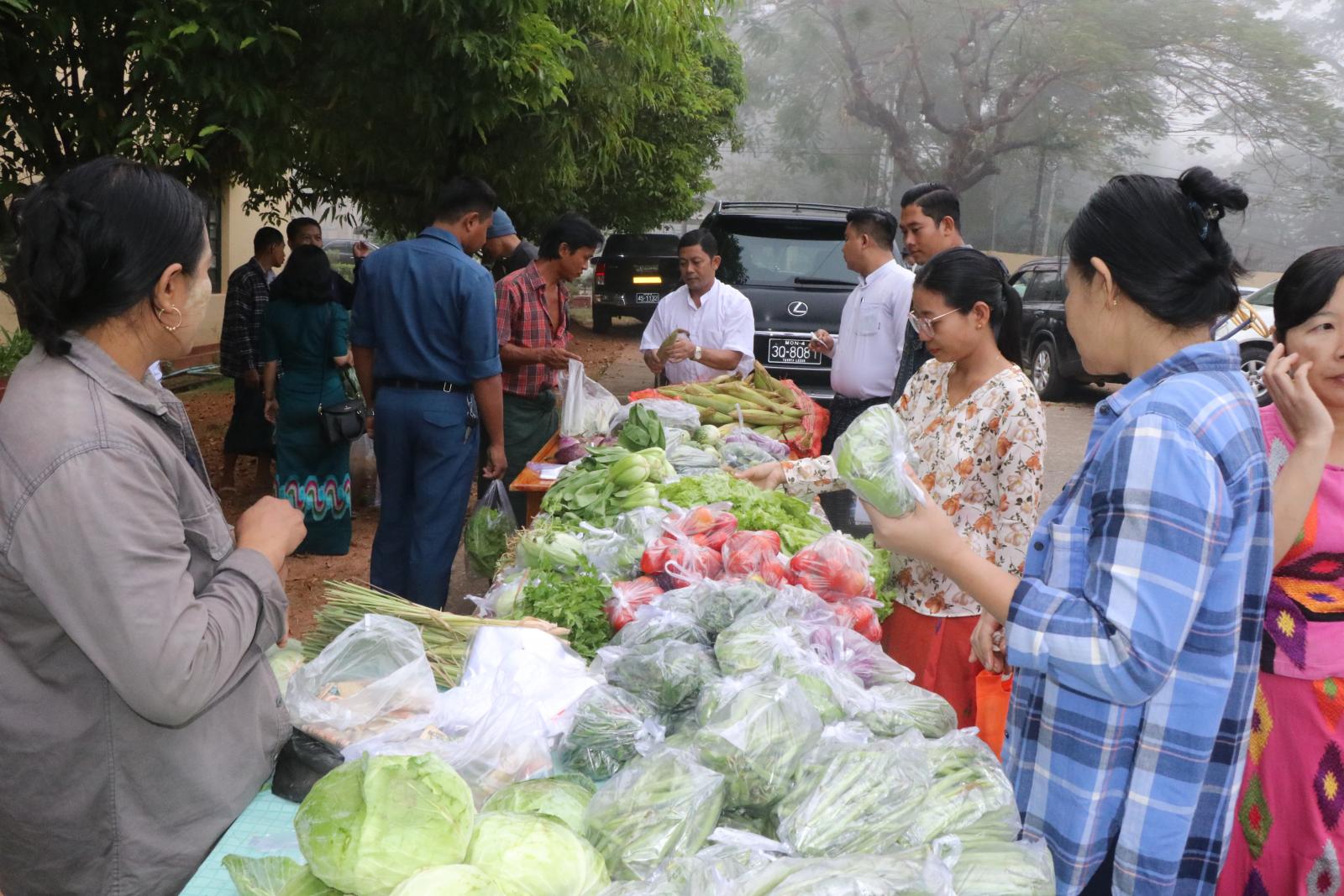 ယင်းနောက် ပြည်နယ်ဝန်ကြီးချုပ်က အခြေခံစားသောက်ကုန်ပစ္စည်းများအား ပညာရေးဒီဂရီကောလိပ်ရှိ ဆရာ၊ ဆရာမများ၊ ဝန်ထမ်းများနှင့်မိသားစုဝင်များ၊ အဆောင်နေ ကျောင်းသားသူများက အေးချမ်းပျော်ရွှင်စွာဖြင့် လာရောက်ဝယ်ယူနေကြမှုကို လှည့်လည်ကြည့်ရှုအားပေးခဲ့သည်။