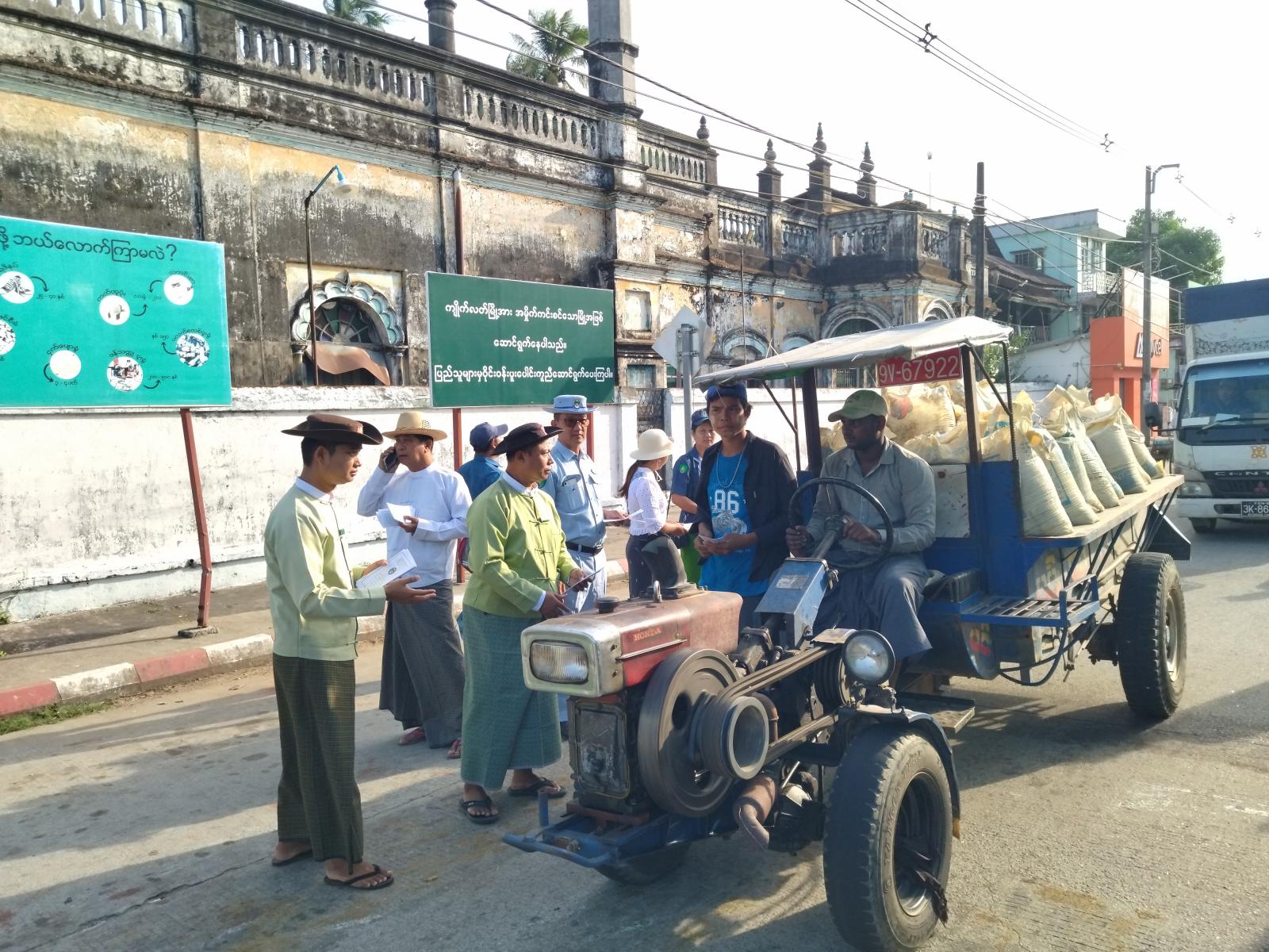 အဆိုပါ လက်ကမ်းစာစောင်များဖြန့်ဝေရာတွင် မြို့နယ်စီမံအုပ်ချုပ်ရေးအဖွဲ့ဉက္ကဋ္ဌ ဦးမင်းအောင်နှင့်အဖွဲ့ဝင်များ၊ မြို့နယ်စည်ပင်သာယာရေးကော်မတီဉက္ကဋ္ဌ၊ မြို့နယ်စည်ပင်သာယာရေးအဖွဲ့ အမှုဆောင်အရာရှိ ဦးသက်နိုင်ဝင်းနှင့် ဝန်ထမ်းများမှ ပြည်သူများ သိရှိလိုက်နာနိုင်စေရန်ရည်ရွယ်၍ ပလတ်စတစ်လျော့ကျသော ပတ်ဝန်းကျင်ဖြစ်စေဖို့အတွက် သိကောင်းစရာ အချက်(၉)ချက်၊ အမှိုက်ပြဿနာဘာလို့ဖြစ်ရတာလဲ၊ ပလတ်စတစ်လျော့ချသည့်နည်းစဉ်များ(5R)၊ အမှိုက်တွေကို ဘယ်လိုပစ်သင့်သလဲ၊ အမှိုက်ကောက်ကြစို့၊ တို့တာဝန် စသည့် မြို့သန့်ရှင်းသာယာလှပစေရေးအတွက် စည်းကမ်းမဲ့အမှိုက်စွန့်ပစ်မှု လျော့ကျစေရေး၊ အမှိုက်စွန့်ပစ်မှု အလေ့အကျင့်ကောင်းများ ဖြစ်ပေါ်လာစေရေးနှင့်ပတ်သက်၍ သိကောင်းစရာ အသိပညာပေး လက်ကမ်းစာစောင်များ ဖြန့်ဝေပေးခဲ့ကြောင်း သိရသည်။