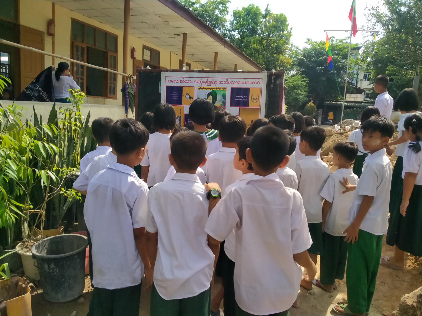 ထို့နောက် ပြန်ကြားရေးနှင့်ပြည်သူ့ဆက်ဆံရေးဦးစီးဌာနမှ ခင်းကျင်းပြသထားသည့် သိမှတ်ဖွယ်ရာစာအုပ်စာစောင်များ၊ နံရံကပ်စာစောင်များ၊ ဓာတ်ပုံများကို တက်ရောက်လာကြသည့် ကျောင်းသား၊ ကျောင်းသူတို့က စိတ်ပါဝင်စားစွာဖြင့် ကြည့်ရှုလေ့လာမှတ်သားခဲ့ကြကြောင်း သိရသည်။