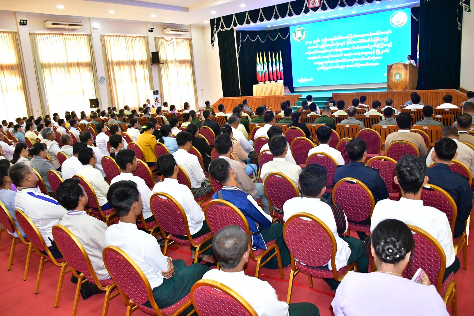၂ဝ၂၄ ခုနှစ်၊ လူဦးရေနှင့်အိမ်အကြောင်းအရာသန်းခေါင်စာရင်း ကောက်ယူခြင်းလုပ်ငန်းတွင် နိုင်ငံတော်စီမံကိန်းဖြစ်သည့် သန်းခေါင်စာရင်းကောက်ယူခြင်းလုပ်ငန်းအား ပါဝင်ဆောင်ရွက်ခဲ့သည့် စာရင်းစစ်/စာရင်းကောက်ဆရာ၊ ဆရာမများနှင့် မြို့နယ်၊ ကျေးရွာအုပ်စု သန်းခေါင်စာရင်းကော်မတီတို့အား ဂုဏ်ပြုမှတ်တမ်းလွှာပေးအပ်ပွဲ အခမ်းအနားကို ယမန်နေ့ နံနက် (၉) နာရီတွင် နေပြည်တော်ကောင်စီရုံး၊ ဇမ္ဗူသီရိခန်းမ၌ ကျင်းပသည်။