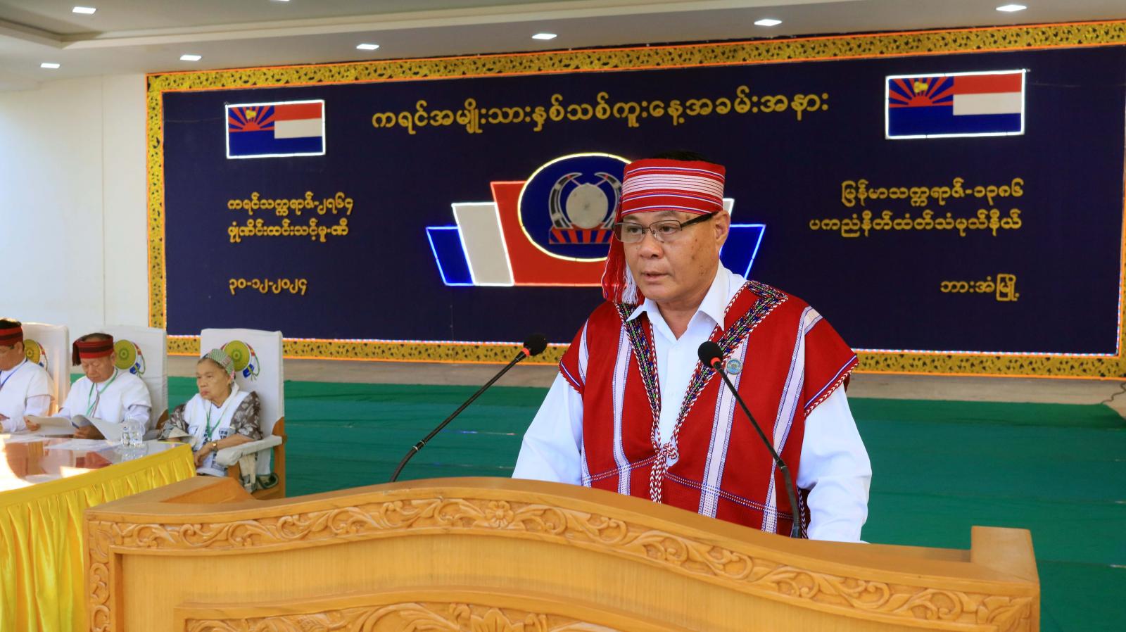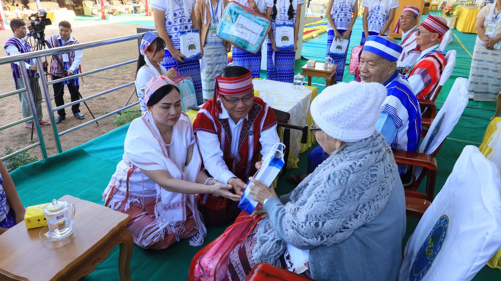 ထို့နောက် နိုင်ငံတော်စီမံအုပ်ချုပ်ရေးကောင်စီဥက္ကဋ္ဌ နိုင်ငံတော်ဝန်ကြီးချုပ်ဗိုလ်ချုပ်မှူးကြီး သတိုးမဟာသရေစည်သူ သတိုးသီရိသုဓမ္မမင်းအောင်လှိုင်ထံမှ ပေးပို့သည့်သဝဏ်လွှာကို သဘာပတိဦးစောခင်မောင်မြင့်ကဖတ်ကြားပြီး တိုင်းရင်းသားလူမျိုးများရေးရာဝန်ကြီးဌာန ပြည်ထောင်စုဝန်ကြီး Jeng Phang နော်တောင်ထံမှပေးပို့သည့် သဝဏ်လွှာကို ပြည်နယ်တိုင်းရင်းသားရေးရာဝန်ကြီးဦးစန်းကိုကဖတ်ကြားကာ ပြည်နယ်ဝန်ကြီးချုပ်သီရိပျံချီဦးစောမြင့်ဦးက နှစ်သစ်ကူးဆုမွန်ကောင်းစကားပြောကြားသည်။