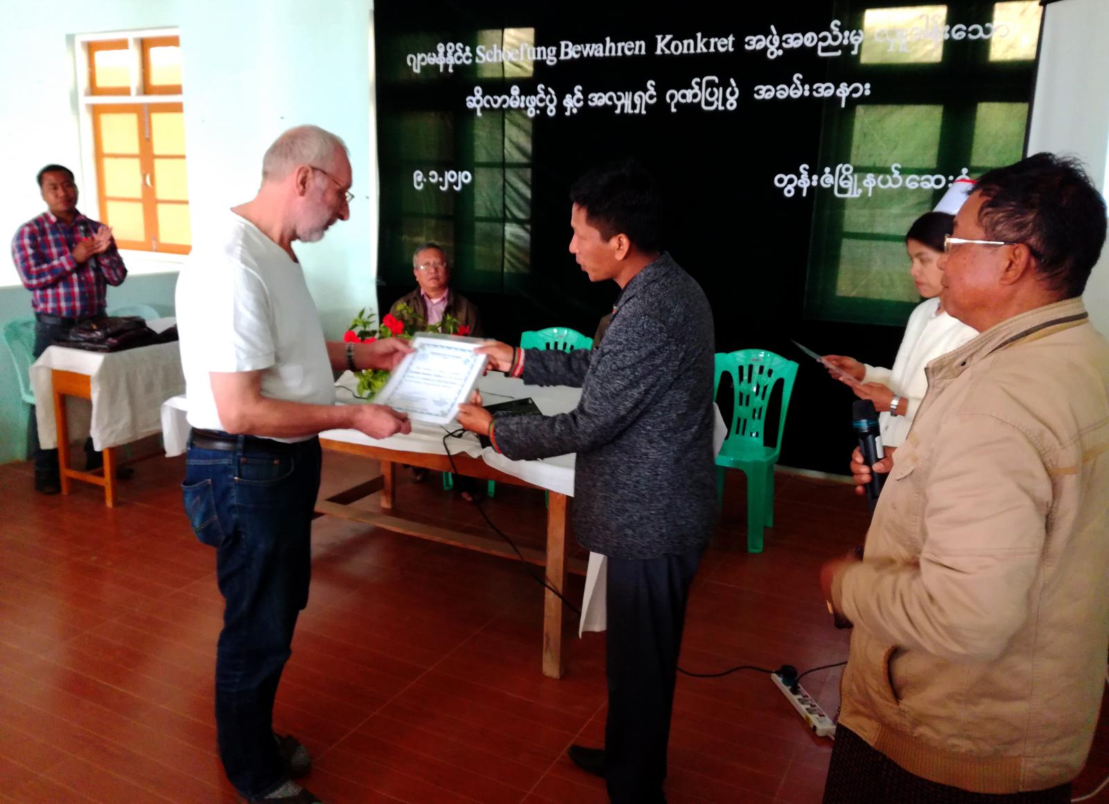 ရှေးဦးစွာ မြို့နယ် အုပ်ချုပ်ရေးမှူးကိုယ်စား ဒုတိယမြို့နယ်အုပ်ချုပ်ရေးမှူး ဦးနေလင်းစိုးနှင့် မြို့နယ် ကျန်းမာရေး ဦးစီးဌာနမှူး ဒေါက်တာထန်ရှန်းခိုင်တို့က ကျေးဇူးတင်စကား ပြောကြားခဲ့ကြသည်။ ဆက်လက်၍ မြို့နယ် ကျန်းမာရေး မိသားစုများနှင့် မြို့နယ်ကျန်းမာရေး ကော်မတီဝင်များက အလှူရှင်များအား ဂုဏ်ပြု လက်မှတ်များ နှင့် ရိုးရာအဝတ်အထည်များကို ပြန်လည်ပေးအပ်ခဲ့ကြသည်။ ထို့နောက် အလှူရှင်များကိုယ်စား အဖွဲ့ခေါင်းဆောင် ဂျာမဏီနိုင်ငံသား မစ္စတာဟန်က ဆိုလာနှင့်ဆက်စပ်ပစ္စည်းများ ရေရှည် အသုံးပြုနိုင်ရေးအတွက် လမ်းညွှန်စကား ပြန်လည် ပြောကြားခဲ့သည်။ Global Chin Chrstiam Federation(GCCF)မှ ဒေါက်တာလှအောင် ဦးဆောင်မှုဖြင့် ဂျာမဏီနိုင်ငံ သဘာဝ ပတ်ဝန်းကျင် ထိန်းသိမ်းရေးအဖွဲ့အစည်း တစ်ခုဖြစ်သော Schoefung Bewahrn Konkretမှ တွန်းဇံမြို့နယ် ပြည်သူ့ဆေးရုံ (၂၄)နာရီ မီးလင်းနိုင်ရေးအတွက် ဆိုလာနှင့် ဆက်စပ်ပစ္စည်းများနှင့် Ultra Sound စက်တစ်လုံးတို့ကို လာရောက် လှူဒါန်း တပ်ဆင် ပေးခဲ့ကြောင်းသိရသည်။