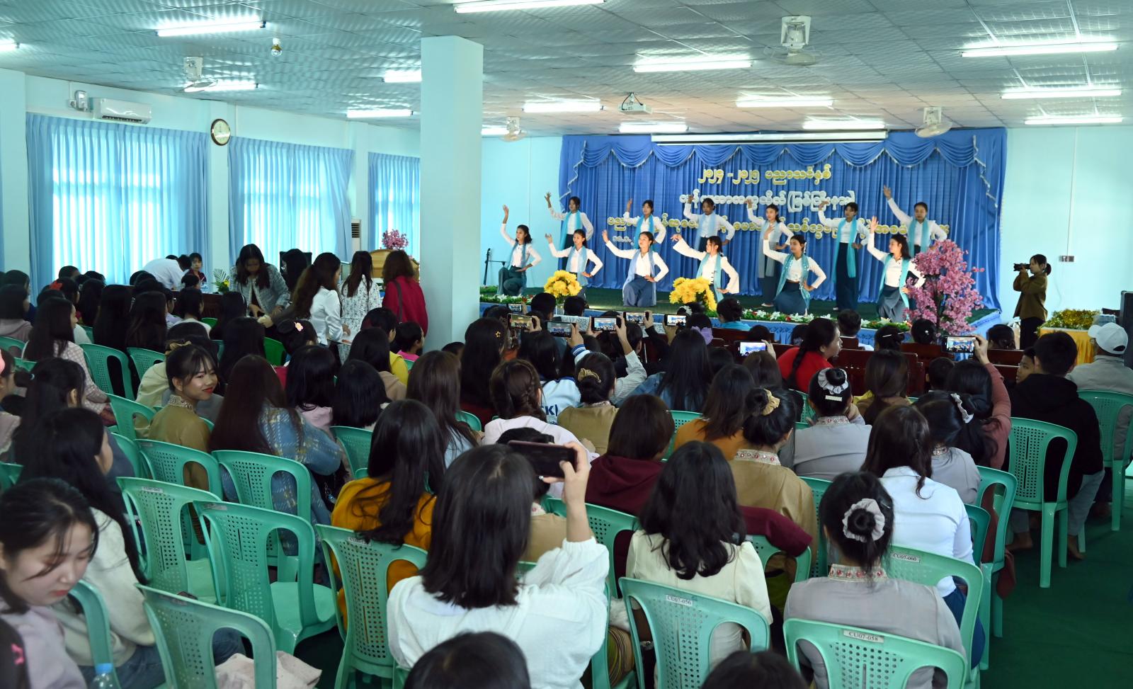 ကွန်ပျူတာတက္ကသိုလ်(မြစ်ကြီးနား)၏ ၂၀၂၄-၂၀၂၅ ပညာသင်နှစ် ပညာရည်ချွန်ဆုပေးပွဲနှင့် ပထမနှစ်တက်ရောက်ကြမည့် ကျောင်းသား/ကျောင်းသူများအား မောင်မယ်သစ်လွင်ကြိုဆိုပွဲ အခမ်းအနားကို ယနေ့နံနက်ပိုင်းက ကချင်ပြည်နယ်၊ မြစ်ကြီးနားမြို့ရှိ အဆိုပါ တက္ကသိုလ်ဘွဲ့နှင်းသဘင်ခန်းမ၌ ကျင်းပပြုလုပ်ရာ ပြည်နယ်တရားလွှတ်တော် တရားသူကြီးချုပ် ဒေါ်အေးအေးမော်နှင့် ပြည်နယ်အစိုးရအဖွဲ့ဝင်များ တက်ရောက်အားပေးချီးမြှင့်ခဲ့ကြသည်။