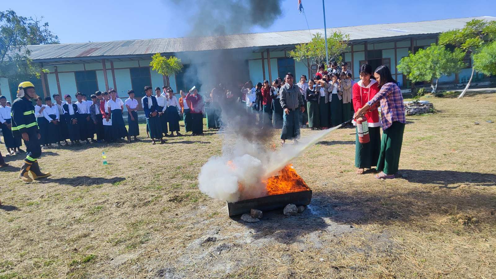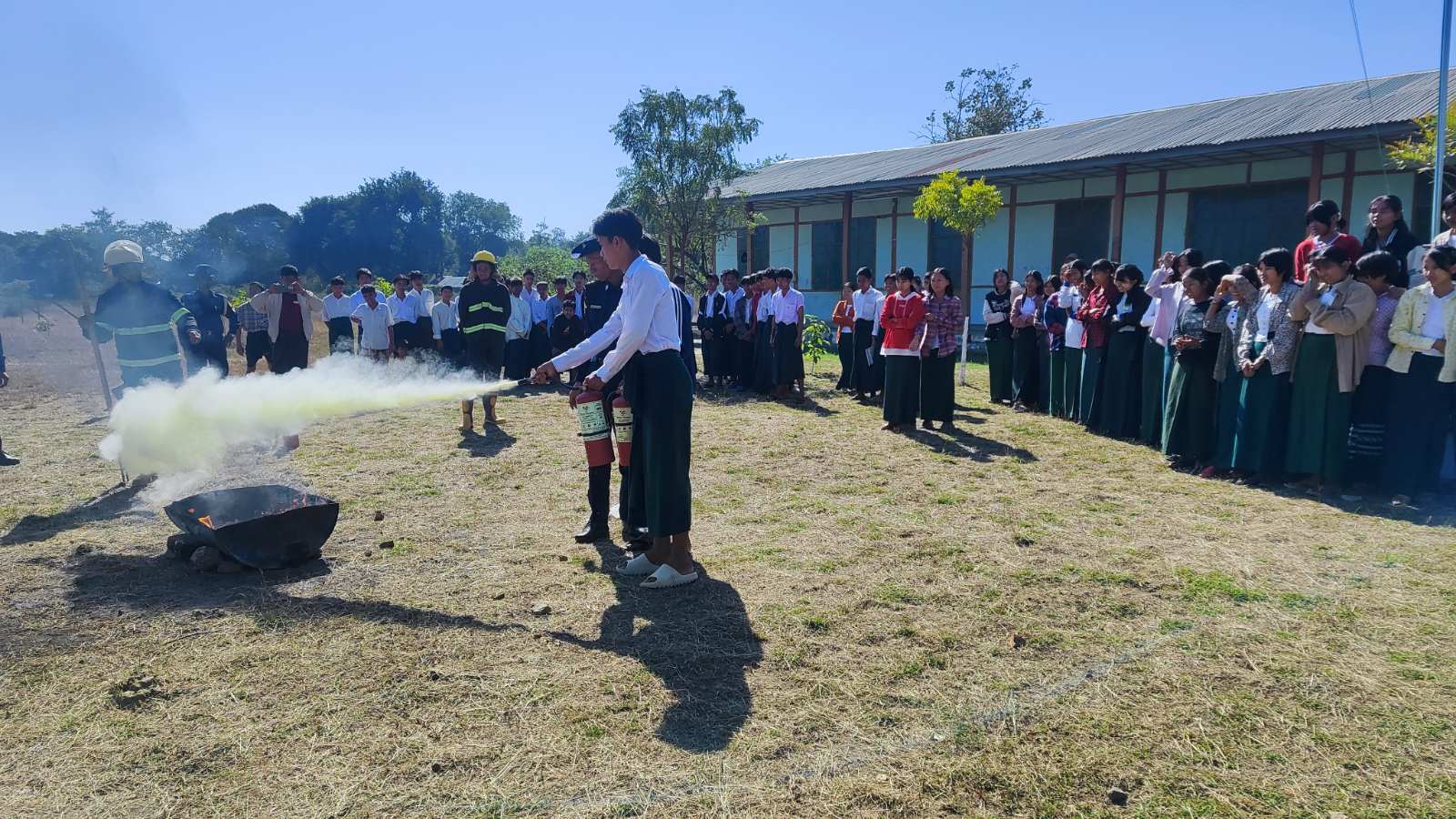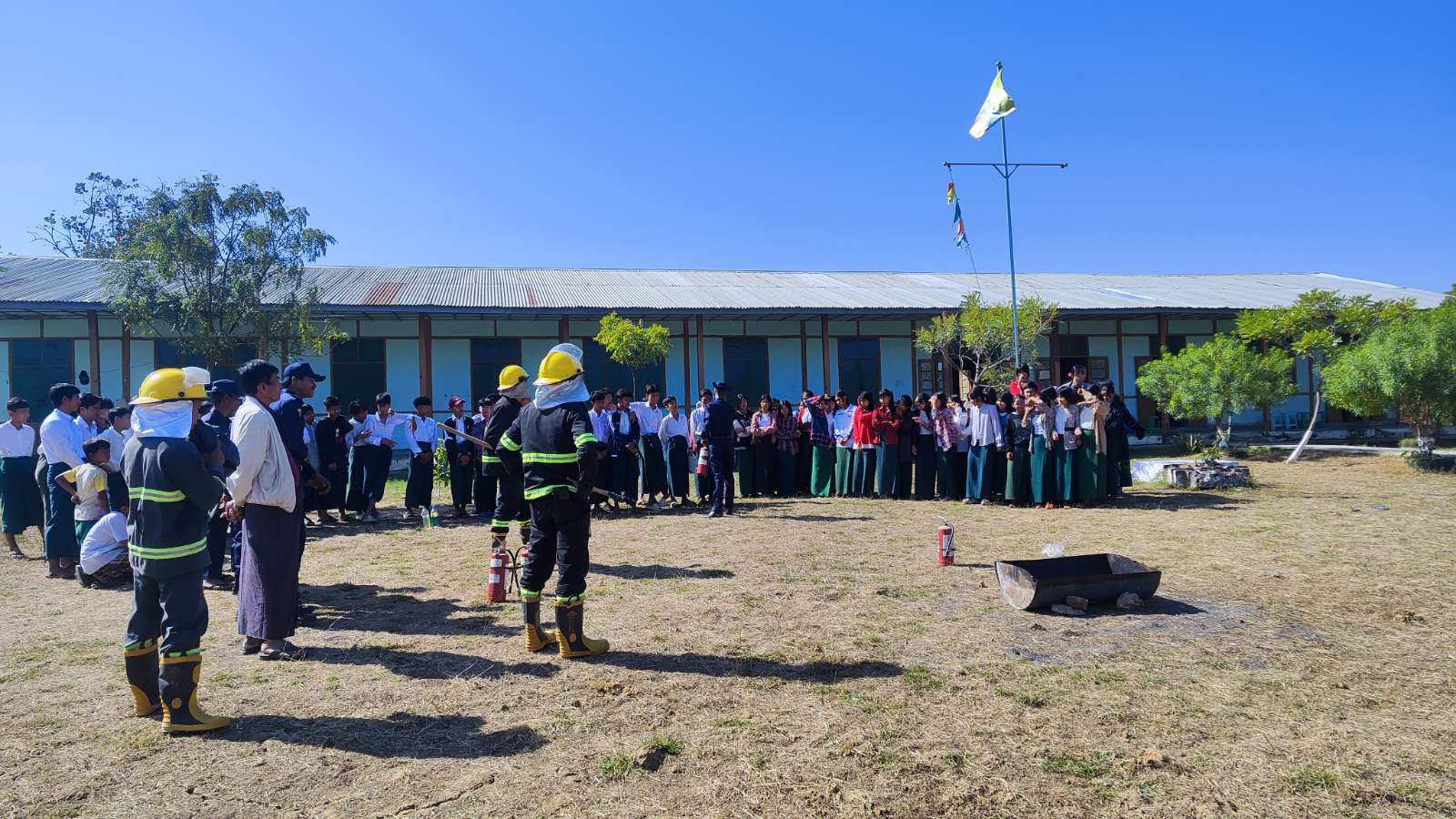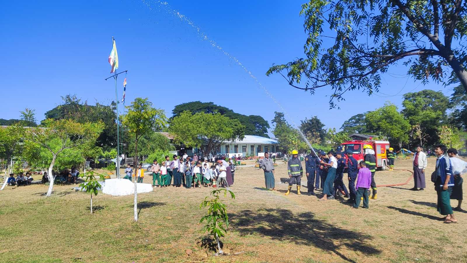 အဆိုပါ ဟောပြောပွဲအခမ်းအနားတွင် တောင်တွင်းကြီးမြို့နယ် မီးသတ်ဦးစီးဌာနမှ မီးသတ်စခန်းမှူး၊ ဒုတိယမီးသတ်ဦးစီးမှူး ဦးသက်နိုင်ဦးက မီးဘေးလုံခြုံကာကွယ်ရေး အသိပညာပေးဆွေးနွေးရခြင်း ရည်ရွယ်ချက်များ၊ မီးလောင်မှုအခြေခံသဘောတရားများ၊ မီးငြှိမ်းသတ်ခြင်းစနစ်များ၊ မီးအတန်းအစားခွဲခြားခြင်းများ၊ လျှပ်စစ်မီးလောင်မှုဖြစ်စေသည့် အဓိကအကြောင်းအရင်းများ၊ လျှပ်စစ်ဝါယာလျှော့မဖြစ်အောင် ကာကွယ်ရမည့်နည်းလမ်းများ၊ မီးကိုမပေါ့ဆကြရန်နှင့် မီးလောင်ပါက ပစ္စည်းဆုံးရှုံးမှုသာမက အသက်အိုးအိမ်များပါ ပျက်စီးဆုံးရှုံးတတ်ကြောင်းကို ရှင်းလင်းဟောပြောခဲ့ပြီး မြို့နယ်ဒုတိယမီးသတ်ဦးစီးမှူး ဦးသက်နိုင်ဦး ဦးဆောင်၍ တပ်ဖွဲ့ဝင် (၄)ဦးဖြင့် အဆိုပါကျောင်းဝင်းအတွင်းရှိ ကွင်းပြင်တွင် ဆီမီးလောင်မှုအား မီးသတ်ဆေးဘူးဖြင့် မီးငြိမ်းသတ်မှုကို လက်တွေ့သရုပ်ပြခြင်း၊ မီးသတ်ပိုက်ဖြင့် လက်တွေ့မီးငြှိမ်းသတ်သရုပ်ပြသ၍ လက်တွေ့ဆောင်ရွက်ခြင်းများကို ပြုလုပ်ခဲ့ကြောင်း သိရသည်။