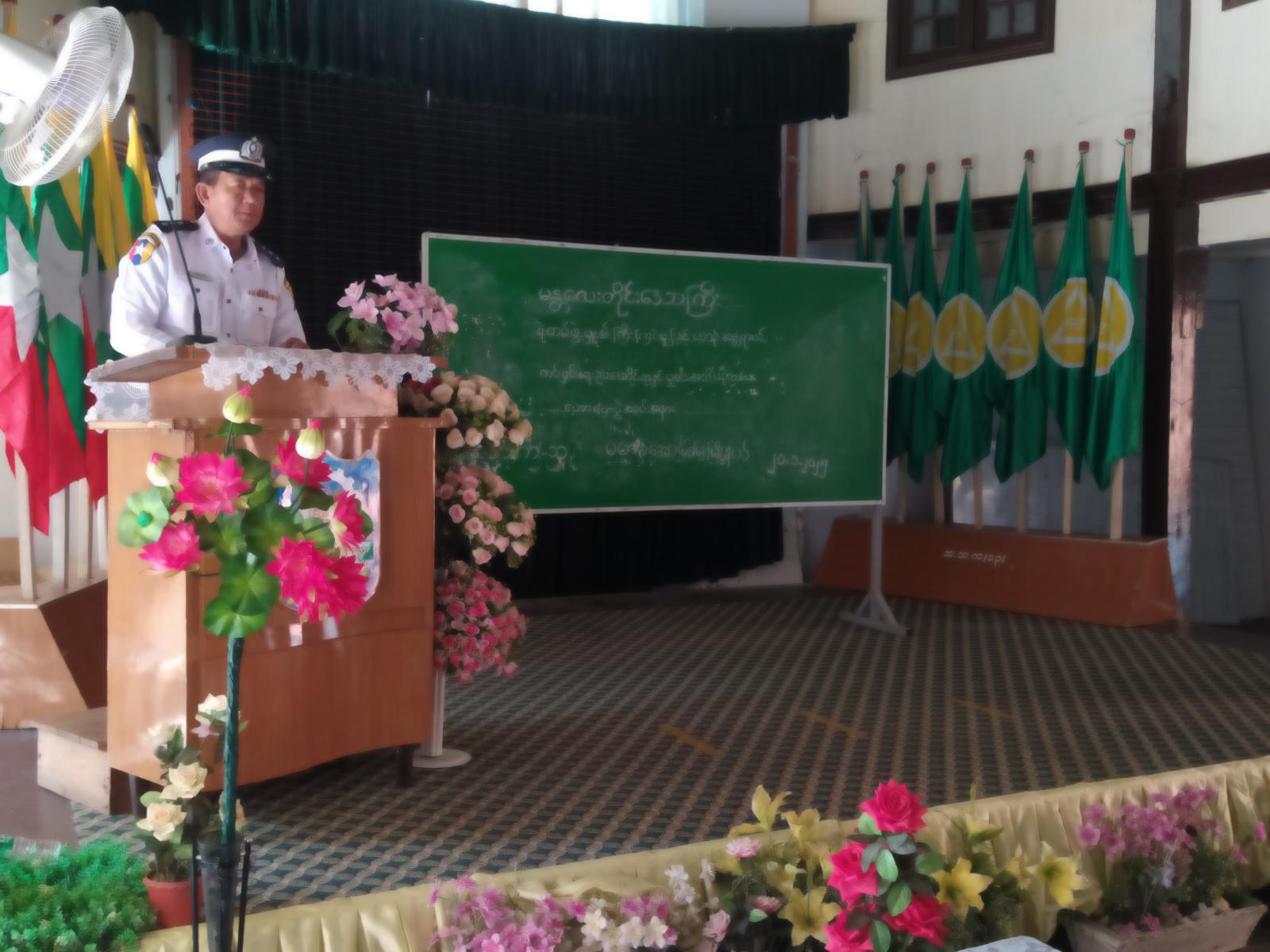အဆိုပါ ဟောပြောပွဲတွင် အမှတ်(၁၈) မူးယစ်တပ်ဖွဲ့စု၊ တပ်ဖွဲ့စုမှူး ရဲမှူးဦးနိုင်အောင်ခိုင်က ဘိန်းဖြူသုံးစွဲခြင်းနှင့် ပတ်သက်၍ ပြောကြားရာတွင် ရေတိုရလဒ်အဖြစ် အသက်ရှုနှုန်းမြန်လာခြင်း၊ အာခေါင်ခြောက်ခြင်း၊ မျက်စိသူငယ်အိမ်ကျဉ်းခြင်း၊ ကိုယ်နှုတ်အမူအယာ ပြောင်းလဲခြင်း၊ စိတ်ရှုပ်ထွေးစေခြင်း၊ ဂနာမငြိမ်ခြင်း၊ ငိုက်မြည်းစေခြင်း၊ နှာရည်ယိုခြင်း၊ ဦးနှောက်သွေးနိုးကြားခြင်းနှင့် ထိုင်းမှိုင်းခြင်းတို့ တစ်လှည့်စီဖြစ်ပေါ်ခြင်း၊ နှုတ်ခမ်းများ ခြောက်သွေ့လာခြင်း၊ အရေပြားများ ပူနွေးလာခြင်း၊ အာဟာရဓာတ်ချို့တဲ့ခြင်း၊ ရေရှည်ရလဒ်အဖြစ် သွေးပြန်ကြောများပြိုကွဲခြင်း၊ အသည်းရောင်ရောဂါဖြစ်ခြင်း၊ ပြည်တည်နာများ ဖြစ်ပေါ်ခြင်း၊ နှလုံးအဆို့ရှင်နှင့် သွေးလမ်းကြောင်းများ ပျက်ဆီးခြင်း၊ အဆုတ်နှင့်ဆိုင်သော ရောဂါများဖြစ်ခြင်း၊ HIV/AIDS ရောဂါများ ဖြစ်ပေါ်ခြင်းများ ဖြစ်ပေါ်စေနိုင်သောကြောင့် စတင်မသုံးစွဲသင့်ကြောင်း ဟောပြောပြီး အမှတ်(၉၀) ယာဉ်ထိန်းတပ်ဖွဲ့စု နယ်မြေမှူးဒုရဲမှူး ဦးငွေထွန်းက ယာဉ်အန္တရာယ် ကင်းရှင်းရေးအသိပညာပေးနှင့် ပတ်သက်၍ ဟောပြောခြင်း၊ အမှတ် (၁၁)လူကုန်ကူးမှု တားဆီးနှိမ် နင်းရေးရဲတပ်ဖွဲ့စု တပ်ဖွဲ့စိတ်မှူး ရဲအုပ် ဦးဦးကိုမျိုးကလည်း လူကုန်ကူးမှုတားဆီး နှိမ်နင်းရေးဆိုင်ရာ အသိပညာပေးခြင်းများကိုလည်းကောင်း အသီးသီးဟောပြောခဲ့သည်။