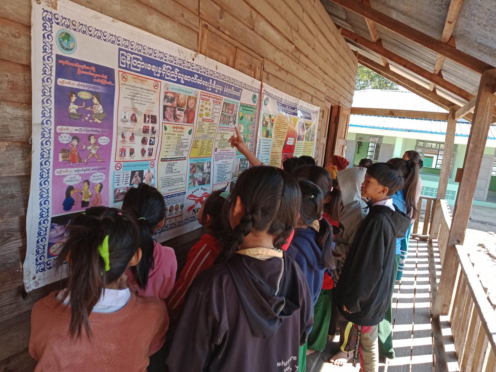 ထို့နောက် ကျောင်းသား၊ ကျောင်းသူများအား ပုံပြင်နှင့်ကဗျာများ၊ အခြားအသိပညာပေးစာအုပ်များပြသခြင်း၊ နယ်လှည့်စာကြည့်တိုက်ကွင်းဆင်းဆောင်ရွက်ပေးကာ လူကုန်ကူးမှုအန္တရာယ်၊ မူးယစ်ဆေးဝါးအန္တရာယ် အသိပညာပေးနံရံကပ်စာစောင်များကို ပြသခဲ့ကြောင်း သိရသည်။