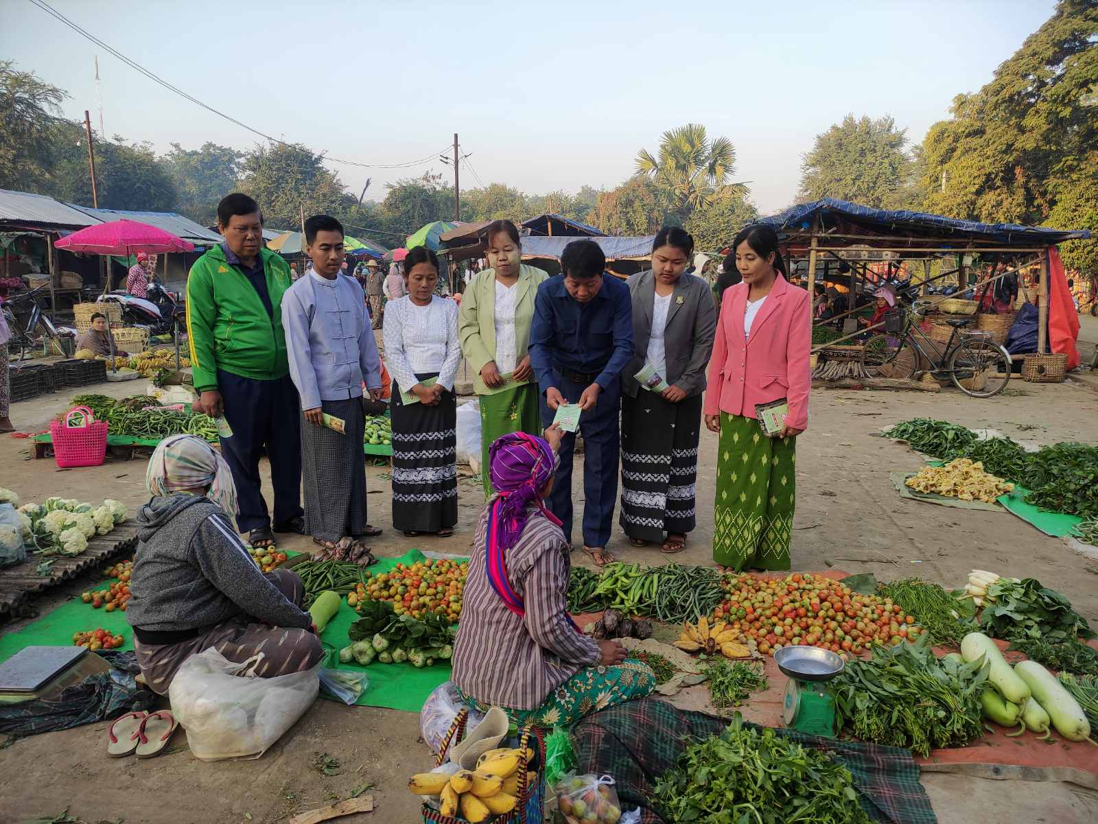 အဆိုပါ လုပ်ငန်းများ ဆောင်ရွက်ရာတွင် မြို့နယ်အထွေထွေအုပ်ချုပ်ရေးဦးစီးဌာမှ ဝန်ထမ်းများ၊ မြို့နယ်စည်ပင်သာယာရေးအဖွဲ့ အမှုဆောင်အရာရှိနှင့် ဝန်ထမ်းများ၊ ကျန်းမာရေးဦးစီးဌာနမှ ဝန်ထမ်းများ၊ မြို့မစျေးအကျိုးတော်ဆောင်အဖွဲ့များ၊ ပတ်ဝန်းကျင်ထိန်းသိမ်းရေးဦးစီးဌာနမှ ဝန်ထမ်းများ ပူးပေါင်း၍ ဈေးရောင်း၊ ဈေးဝယ်ပြည်သူများအား ဈေးဝယ်ယူရာတွင် လက်ဆွဲခြင်းများ၊ ထည့်စရာများ ယူဆောင်လာရန် အသိပညာပေးခြင်း၊ လက်ကမ်းစာစောင်များဖြန့်ဝေပေးခြင်းနှင့် အင်ဖက်၊ စက္ကူအိတ်များ အခမဲ့ဖြန့်ဝေခဲ့ကာ ပလတ်စတစ်အိတ်၊ ကြွပ်ကြွပ်အိတ်အသုံးပြုမှု လျှော့ချရေးအတွက် အသိပညာပေး (campaign) ပြုလုပ်ခြင်းကို အပါတ်စဥ် တနင်္လာနေ့တိုင်း ပြုလုပ်သွားမည်ဖြစ်ကြောင်း မြို့နယ်စည်ပင်သာယာရေးအဖွဲ့ထံမှ သိရသည်။