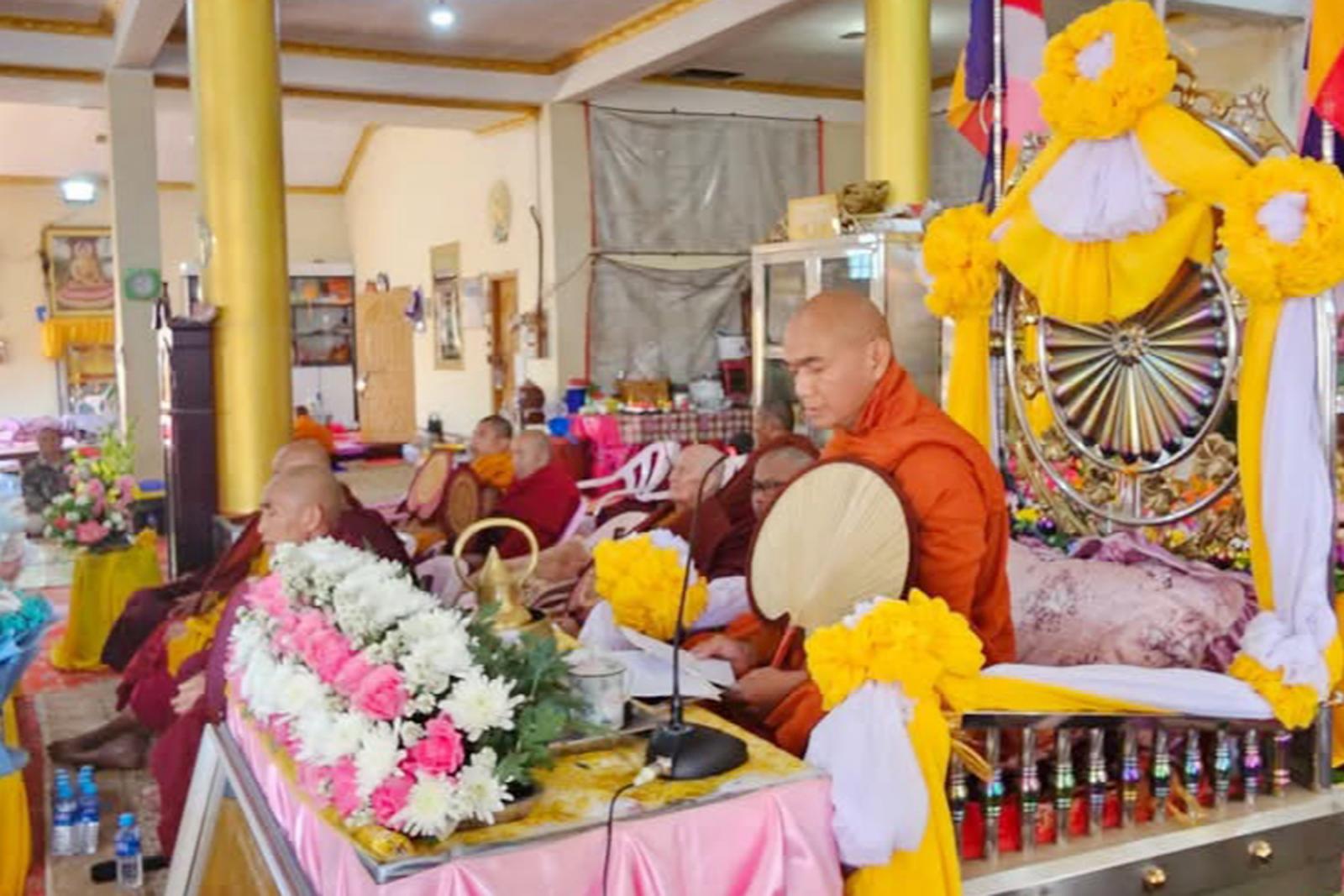 ရှေးဦးစွာ အခမ်းအနားကို ဆရာတော်ကြီးများနှင့် ဧည့်ပရိသတ်အပေါင်းက နမောတဿ သုံးကြိမ်ရွတ်ဆို ဘုရားကန်တော့ဖွင့်လှစ်၍ မြို့နယ်သံဃာ့နာယက ဥက္ကဋ္ဌ ဆရာတော် သာသနဓဇဓမ္မာစရိယ သဒ္ဓမ္မ ဇောတိကဓဇ ဘဒ္ဒန္တကောလိယ ထံမှ ငါးပါးသီလ ခံယူဆောက်တည်ကြကာ စေတနာရှင် အလှူရှင်များတို့က လှူဒါန်းဖွယ်ရာများကို ဆက်ကပ်လှူဒါန်းပြီး ရေစက်သွန်းချ အမျှပေးဝေခဲ့ကြကြောင်း သိရသည်။
