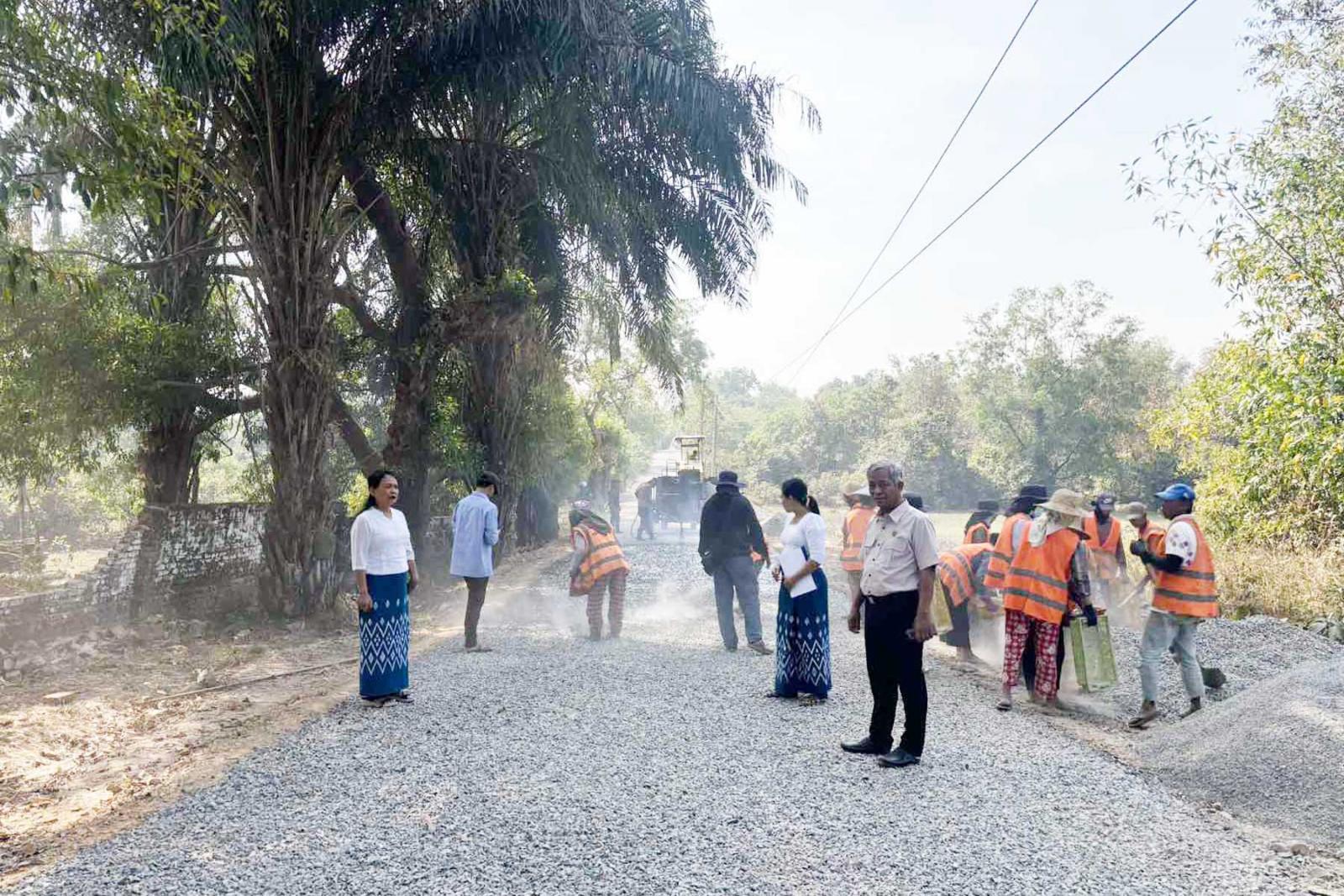 ကျေးလက်နေပြည်သူများအတွက် ၂၀၂၄-၂၀၂၅ ဘဏ္ဍာရေးနှစ် ပြည်ထောင်စုရန်ပုံငွေဖြင့် ကျေးလက်လမ်းဖွံ့ဖြိုးရေးဦးစီးဌာနက သပြေချောင်းကျေးရွာတပ်နယ်ပတ်လမ်း (3.821km) ရှိသည့်အနက် ကျန်ရှိနေသော လမ်းအရှည် (2.212km) ကတ္တရာလမ်းပျက်အတွင်း လမ်းအနိမ့်အမြင့် ဖြေညှိခြင်း၊ လိုအပ်သောနေရာများတွင် ကတ္တရာခင်းခြင်းနှင့် ရေပိတ်လွှာလောင်းခြင်းတို့ကို ဆောင်ရွက်လျက်ရှိကြောင်း သိရသည်။