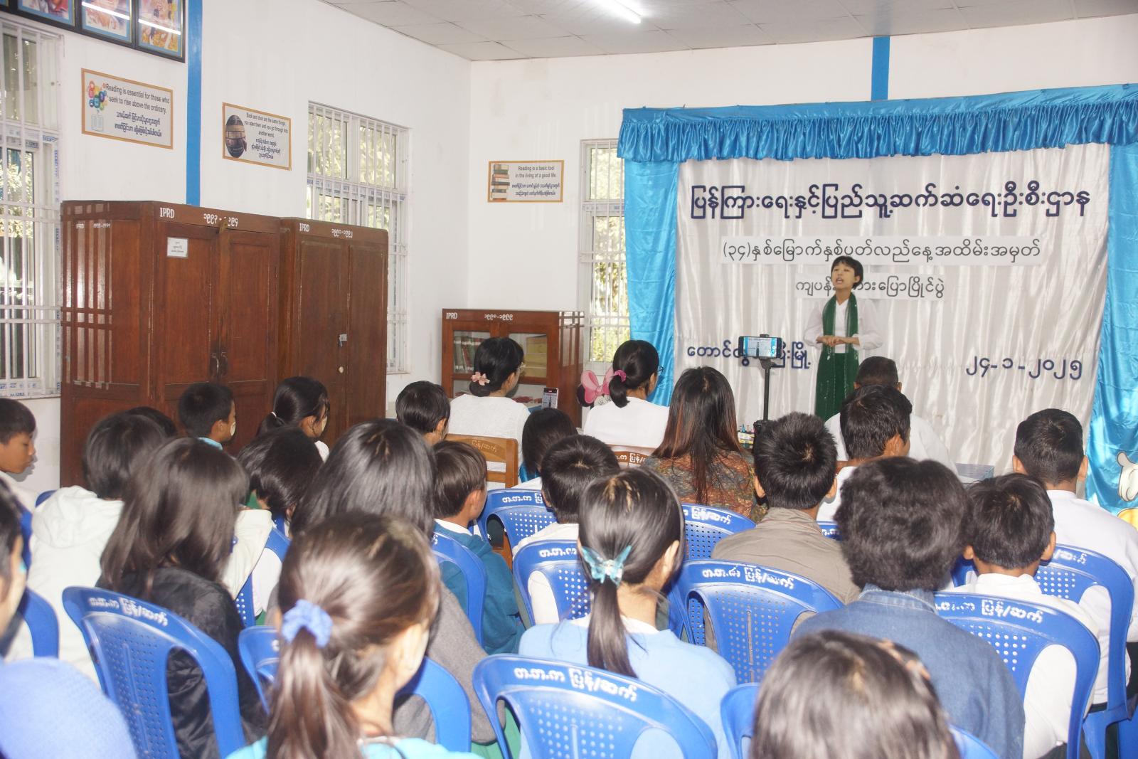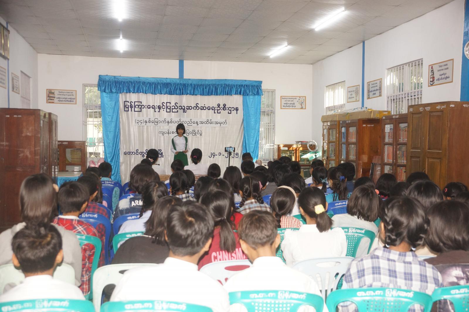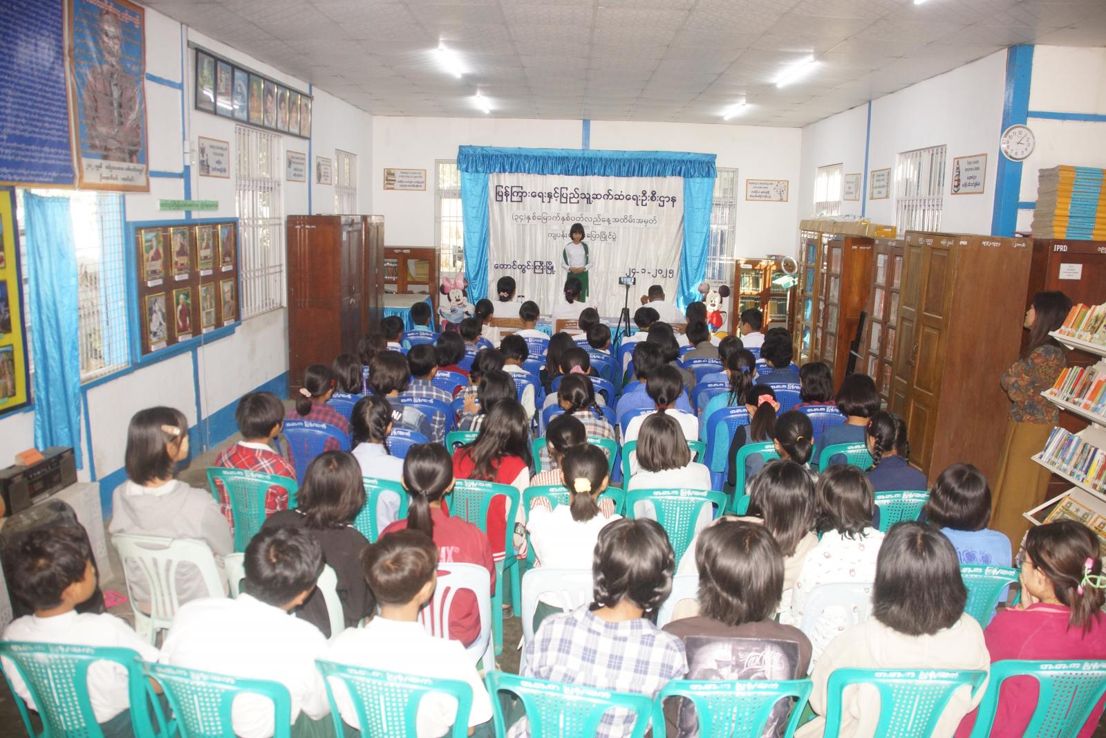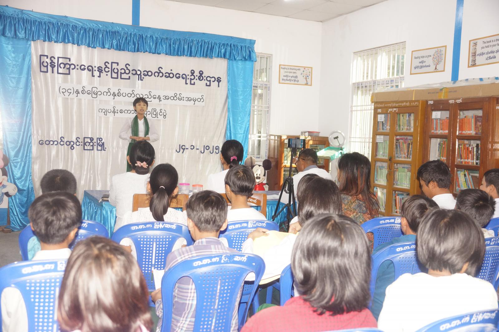 ဦးစွာ ပြန်ကြားရေးနှင့်ပြည်သူ့ဆက်ဆံရေးဦးစီးဌာနမှ ဦးစီးအရာရှိ ဒေါ်အေးမိုးမိုးမြင့်က ၁၉၉၁ နှစ်၊ ဇန်နဝါရီလ (၂၄) ရက်နေ့တွက် စတင်ဖွဲ့စည်းခဲ့သည့် ပြန်ကြားရေးနှင့်ပြည်သူ့ဆက်ဆံရေးဦးစီးဌာနသည် ယနေ့တွင် (၃၄) နှစ်ပြည့်မြောက်ခဲ့ပြီး ဖြစ်ကြောင်း၊ ပြန်/ဆက်ဦးဌာနသည် ပြည်သူအသိပညာပေးလုပ်ငန်းများကို အဓိက ဆောင်ရွက်ရသည့် ဌာနကြီးတစ်ခုဖြစ်ပါကြောင်း၊ မြို့နယ်ပြည်သူစာကြည့်တိုက် (Community Centre) အား ပြည်သူလူထုက စိတ်ဝင်စားသော အကူအညီတောင်းခံနိုင်သော ပေါင်းစပ်လုပ်ကိုင်ဆောင်ရွက်ပေးနိုင်သောနေရာ၊ ပြည်သူများ အမှန်တကယ် ရင်းနှီးကျွမ်းဝင်ပြီး ဝင်ထွက်သွားလာနိုင်သည့်နေရာ၊ ပြည်သူများ အသိပညာဆည်းပူးရာနေရာ၊ သတင်းအချက်အလက်များ ရယူရာနေရာ၊ ပြည်သူများ အပန်းဖြေရာနေရာအဖြစ် ဖြစ်ထွန်းပေါ်ပေါက်လာစေရေး လူမှုရေးအသင်းအဖွဲ့များ၊ အစိုးရမဟုတ်သော အဖွဲ့အစည်းများ၊ ရပ်ရွာအခြေပြုအဖွဲ့အစည်းများဖြင့် ပူပေါင်း၍ ပြပွဲ၊ ပြိုင်ပွဲ၊ ဆွေးနွေးပွဲများ၊ သင်တန်းများ၊ စာဖတ်ဝိုင်းများ၊ လူငယ်စကားဝိုင်းများနှင့် အခြား အသိပညာပေးလုပ်ငန်းများ ဆောင်ရွက်လျက်ရှိပါကြောင်း ပြောကြားခဲ့ပြီး ကျပန်းစကားပြောပြိုင်ပွဲကို ဆက်လက်ကျင်းပရာ မြို့မခြေခံပညာအလယ်တန်းကျောင်းမှ ကျောင်းသား၊ ကျောင်းသူ (၁၅) ဦး ဝင်ရောက်ယှဥ်ပြိုင်ခဲ့သည်။