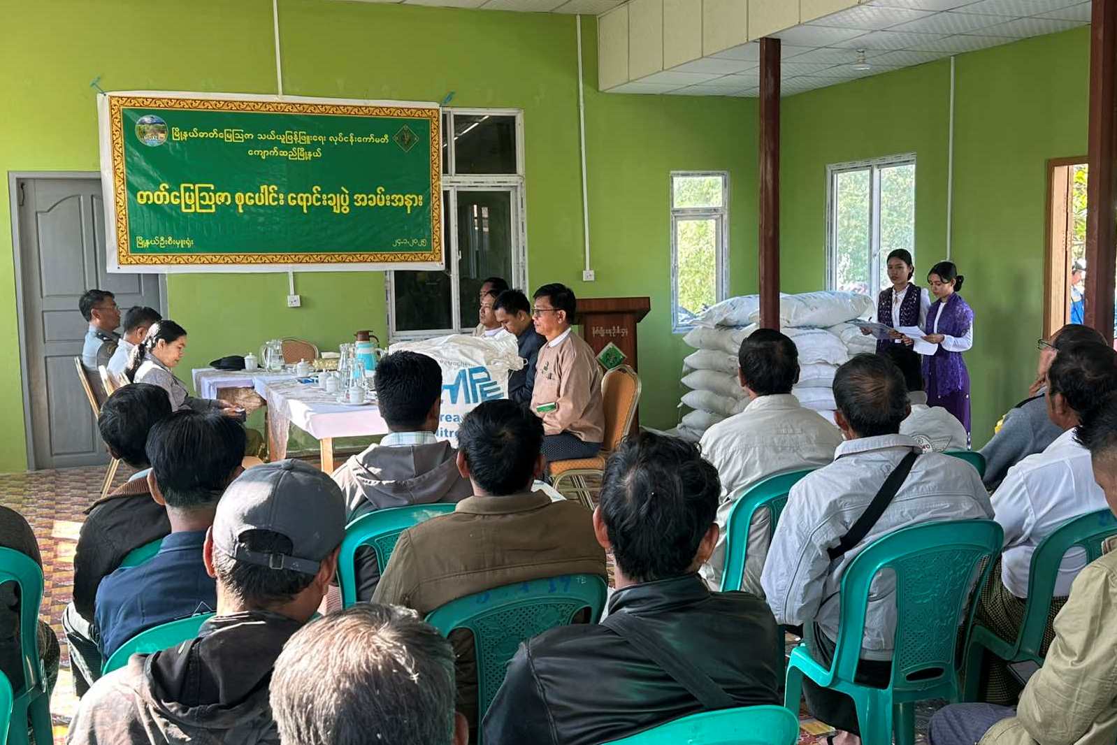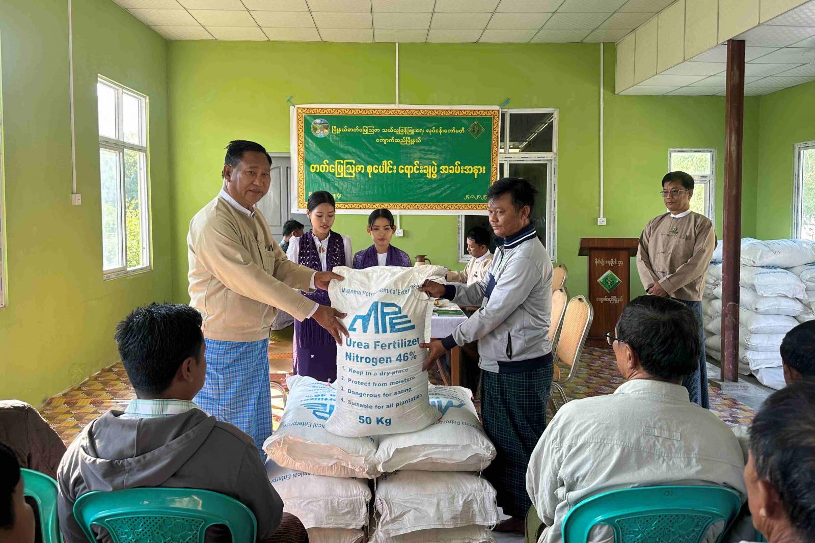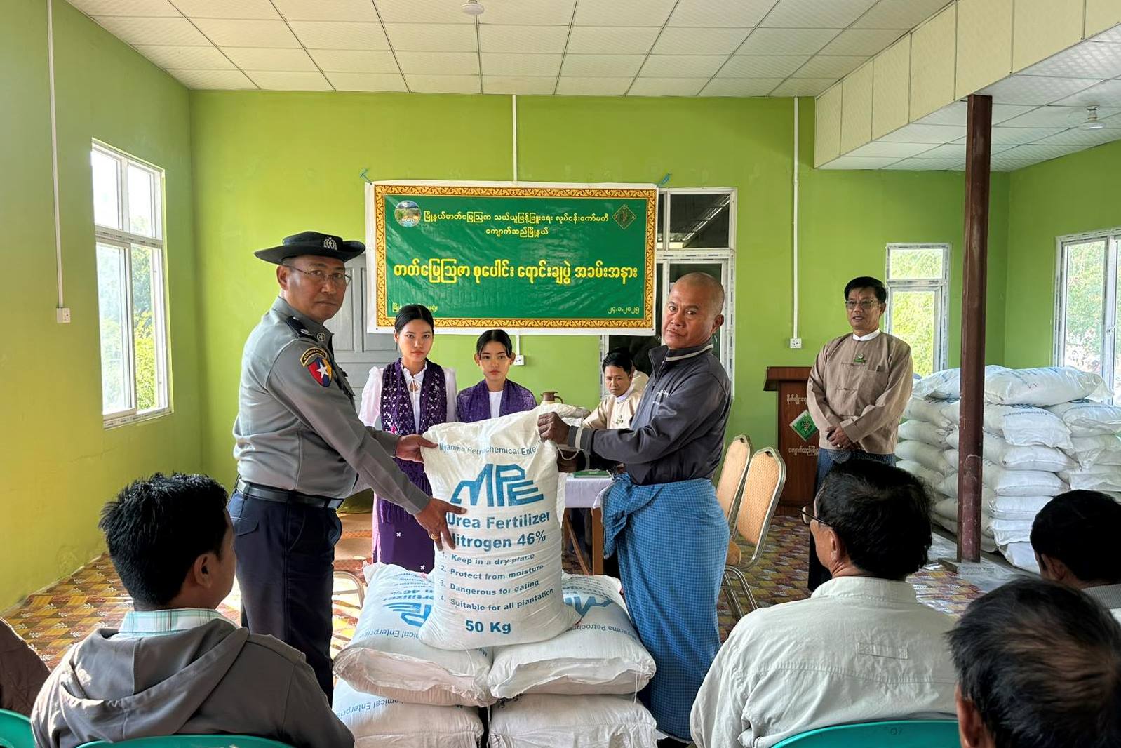 အခမ်းအနားတွင် မြို့နယ်စိုက်ပျိုးရေးဦးစီးဌာနမှ ဦးစီးအရာရှိ ဦးမြင့်အောင်က နိုင်ငံတော်မှ ယူရီးယားဓာတ်မြေဩဇာများကို ဈေးနှုန်းသက်သာစွာရောင်းချပေးခြင်းဖြင့် (၁)ဧကသီးနှံအထွက်နှုန်း တိုးတက်လာစေရန်၊ ပန်းတိုင်အထွက်နှုန်းရရှိစေရန်၊ စိုက်ဧကများ တိုးချဲ့စိုက်ပျိုးနိုင်ပြီး လယ်ယာကဏ္ဍဖွံ့ဖြိုးတိုးတက်လာပြီး နိုင်ငံ့စီးပွားရန်ပုံငွေများ ထူထောင်နိုင်ရန်နှင့် တောင်သူများ၏ လူမှုစီးပွားဘဝ ဖွံ့ဖြိုးတိုးတက်လာစေရန် ရည်ရွယ်ချက်ဖြင့် ဓာတ်မြေဩဇာများ ရောင်းချပေးရခြင်းဖြစ်ကြောင်း အမှာစကားပြောကြားခဲ့ပြီး ကျေးရွာအုပ်စု (၇)အုပ်စုမှ နွေးစပါးနှင့် နွေနှမ်းစိုက်တောင်သူများအား ယူရီယားဓာတ်မြေဩဇာများ ဈေးနှုန်းချိုသာစွာဖြင့် ရောင်းချပေးခဲ့ကြောင်း သိရသည်။