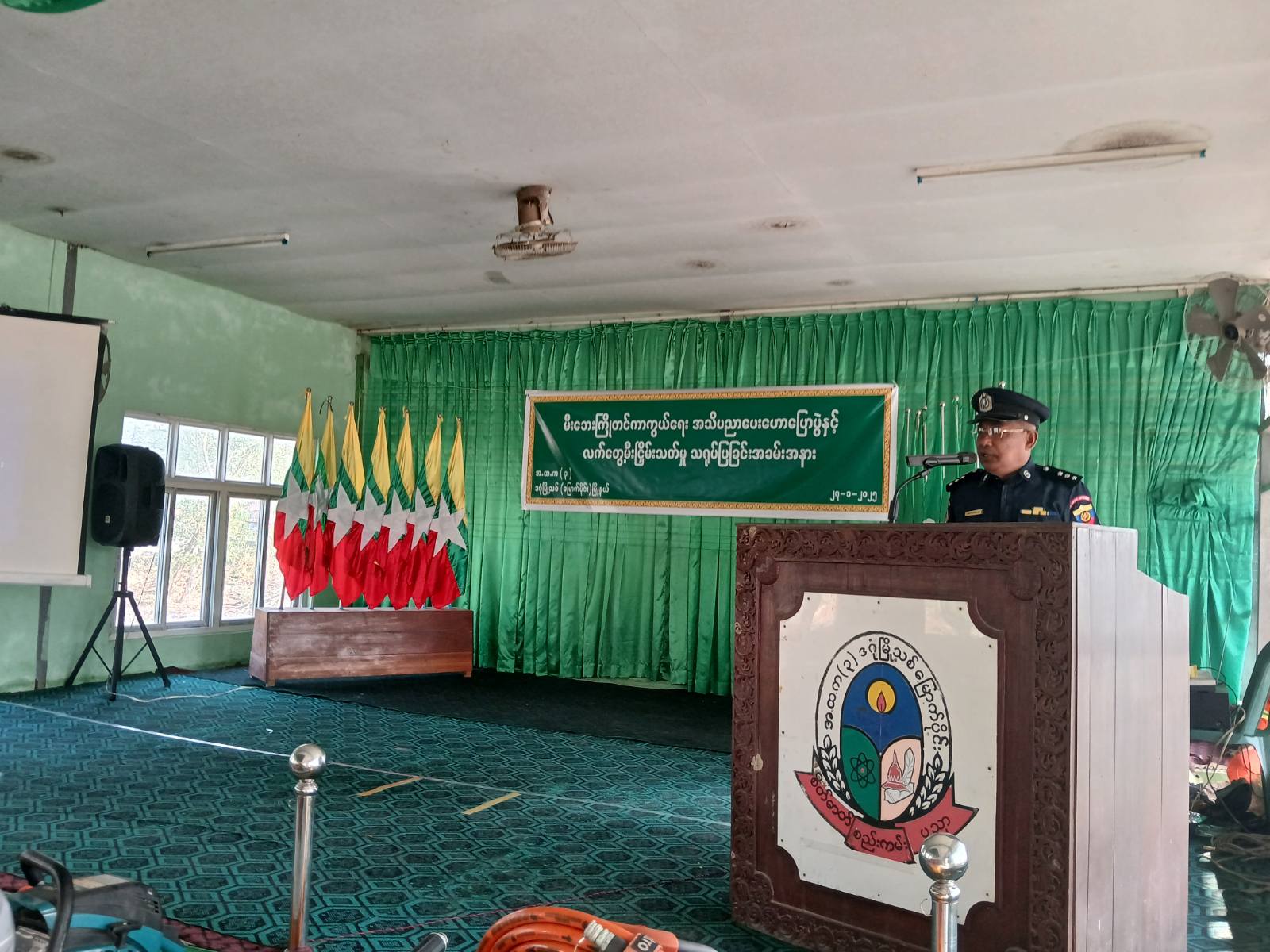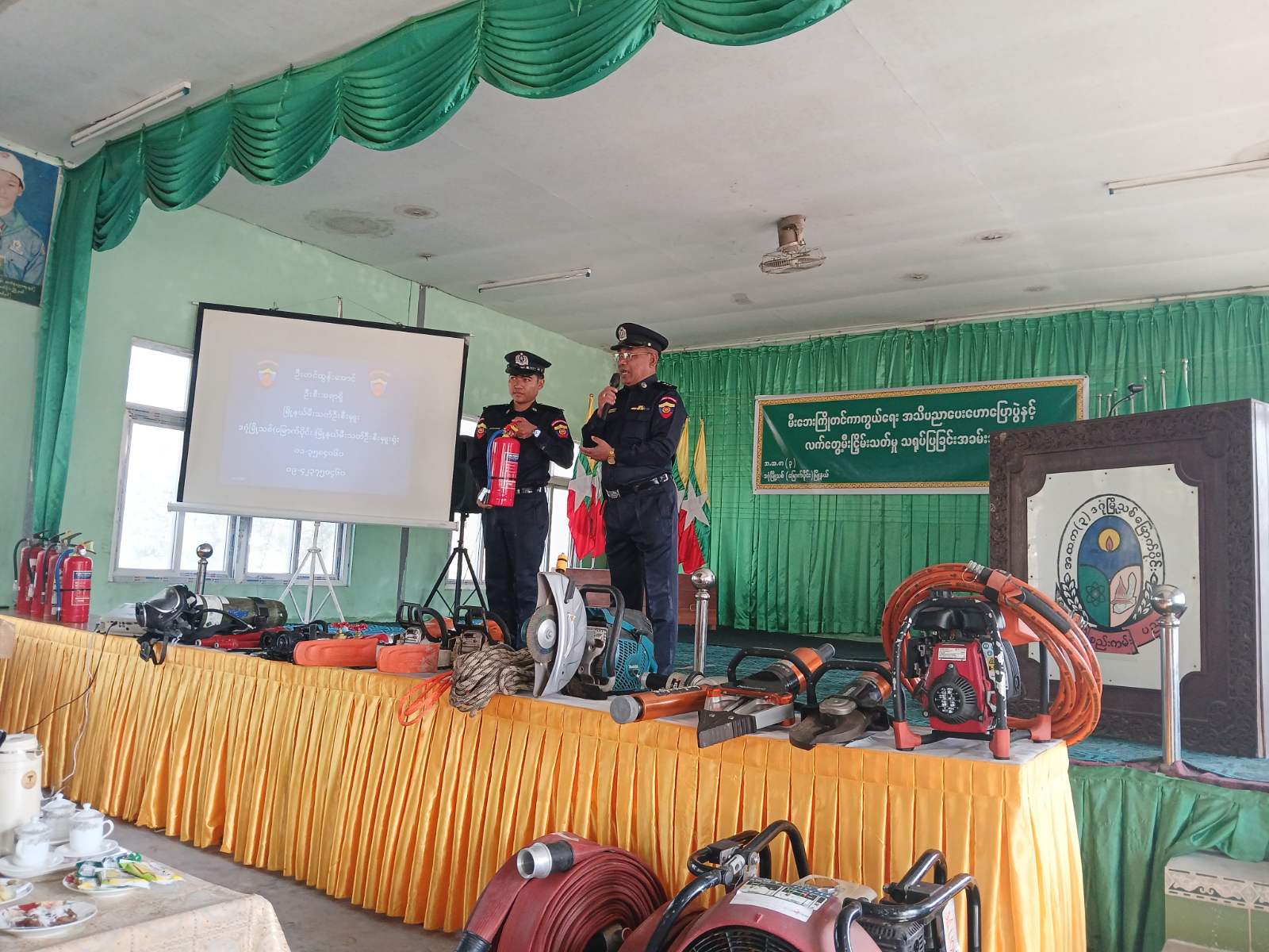 အခမ်းအနားတွင် မြို့နယ်စီမံအုပ်ချုပ်ရေးအဖွဲ့ဉက္ကဋ္ဌ ဦးသန်းဝင်းက အဖွင့်အမှာစကားပြောကြားပြီး မြို့နယ်မီးသတ်ဦးစီးမှူး၊ ဦးစီးအရာရှိ၊ ဦးတင်ထွန်းအောင်က ကျောင်းသား၊ ကျောင်းသူ မီးဘေးကြိုတင်ကာကွယ်ရေးအသိပညာပေးဟောပြောခဲ့သည်။