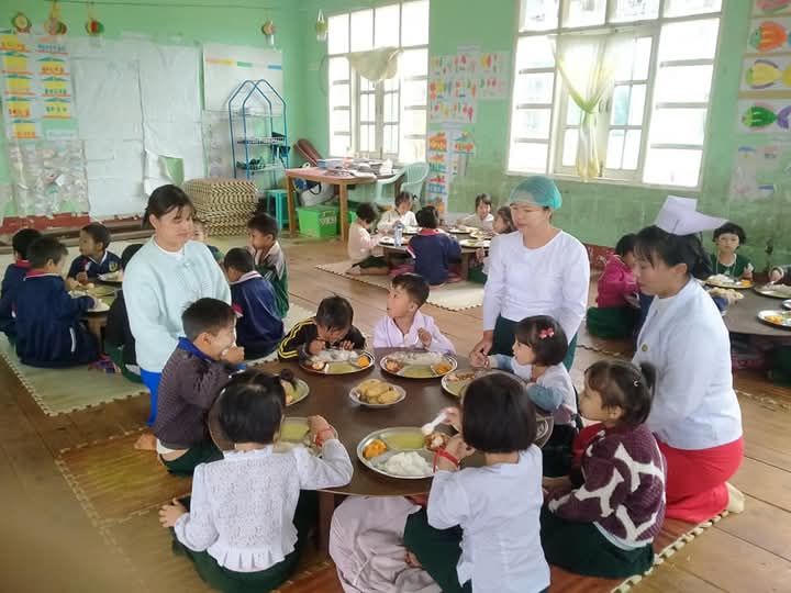ထိုသို့ဆောင်ရွက်ရာတွင် အ.ထ.ကကျောင်းနှင့် အ.မ.ကကျောင်းများရှိ တာဝန်ခံဆရာ/ဆရာမများနှင့် တိုက်နယ်မိခင်နှင့်ကလေးကျန်းမာရေးဌာနမှ ဆရာမဒေါ်နန်းမေထားနှင့်ဝန်ထမ်းများက ကျောင်းသား၊ကျောင်းသူများ အစာမစားမီလက်ကို သန့်ရှင်းစင်ကြယ်စွာဆေးကြောစေခြင်း၊ အသားဓာတ်၊ ကစီဓာတ်၊ အဆီဓာတ်၊ ဗီတာမင်သတ္တုဓာတ်နှင့် ရေဓာတ်များပါဝင်သည့် အာဟာရဖြစ်စေသော ထမင်း၊ဟင်းများဖြင့် ကျွေးမွေးခဲ့ကြောင်း သိရှိရသည်။