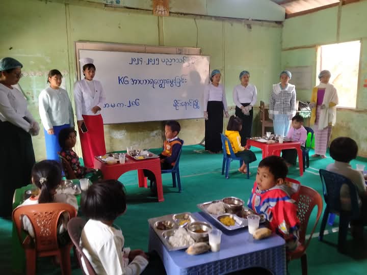 ရှမ်းပြည်နယ်(တောင်ပိုင်း)၊ အ.ထ.ကမိုင်းနောင်နှင့် အ.မ.က(၂၈၆)ကျောင်းတို့တွင် KG ကျောင်းသား၊ကျောင်းသူများအား ကျောင်းတွင်းအာဟာရကျွေးမွေးခြင်းများကို ယနေ့ နေ့လည်(၁၁)နာရီခွဲအချိန်က ဆောင်ရွက်ခဲ့ကြောင်း သိရှိရသည်။