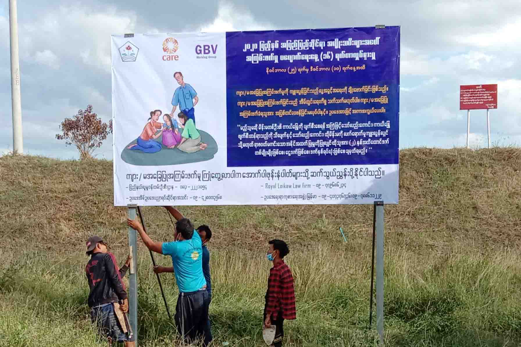အသိပညာပေးဆိုင်းဘုတ်တွင် အမျိုးသမီးများအပေါ် အကြမ်းဖက်မှု မပြုလုပ်ရေး၊ အမျိုးသမီးများ အပေါ် အကြမ်းဖက်ပါက ဥပဒေအရ အရေးယူနိုင်ခြင်းနှင့် အမျိုးသမီးများအား အကြမ်းဖက်မှု ဖြစ်ပေါ်ပါက ဆက်သွယ်ဆောင်ရွက်နိုင်မည့် တယ်လီဖုန်းနံပတ်တို့ဖော်ပြပါရှိ ကြောင်း သိရသည်။